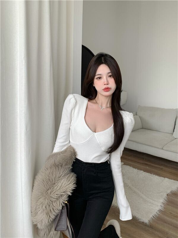 ウィンタースタイルスリーブスリムTシャツ シャツ レディース ロング 冬物 スクウェア Xiaofeijia68074396929