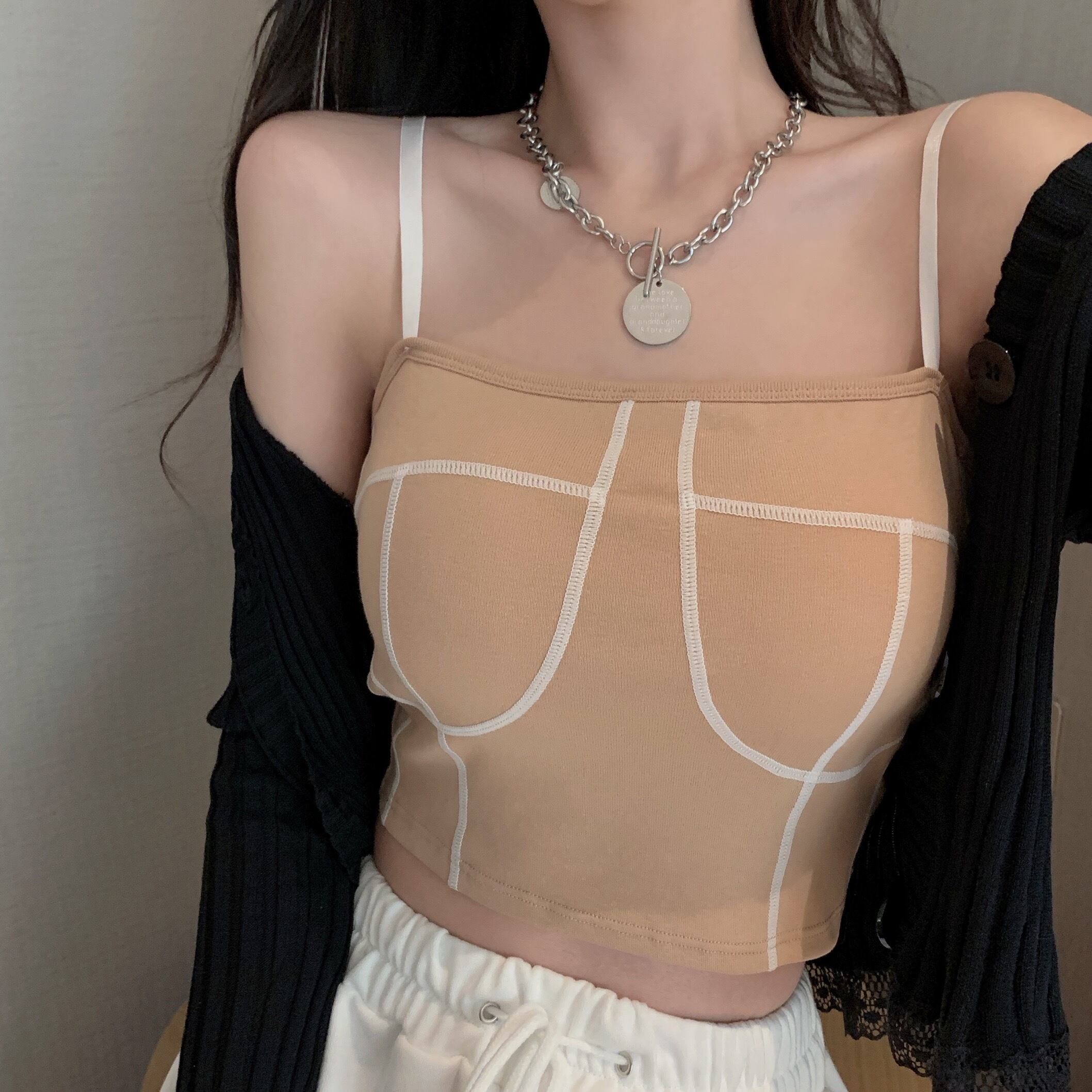 レッドレディースバックサマーカラーノースリーブショートトップス 夏物 Xiaofeijia45532404155