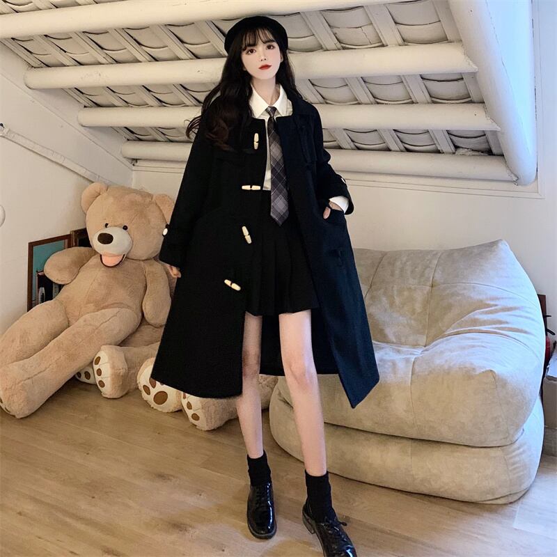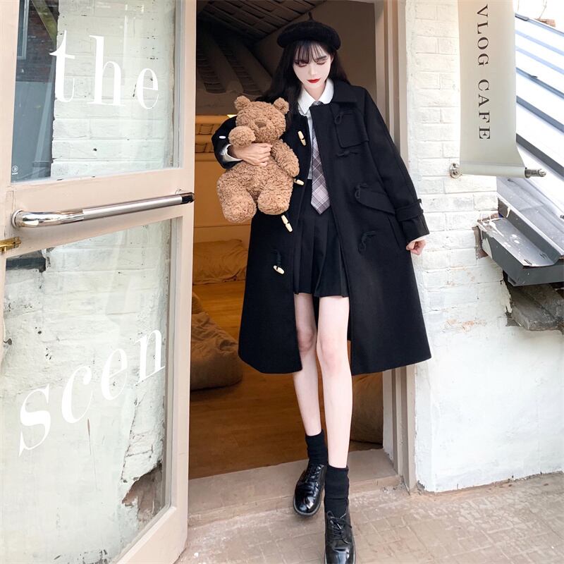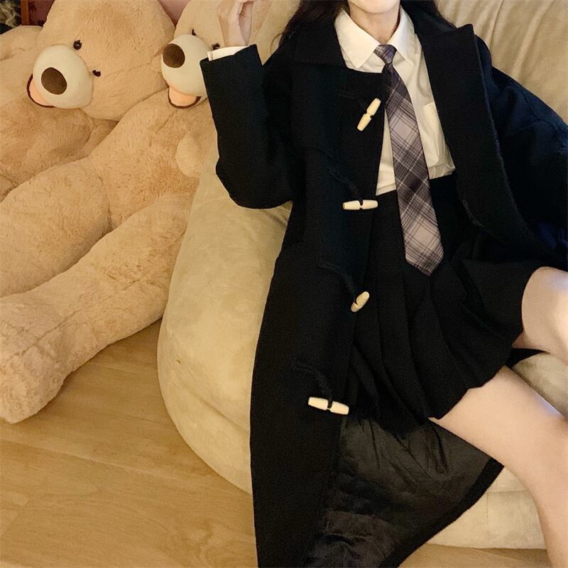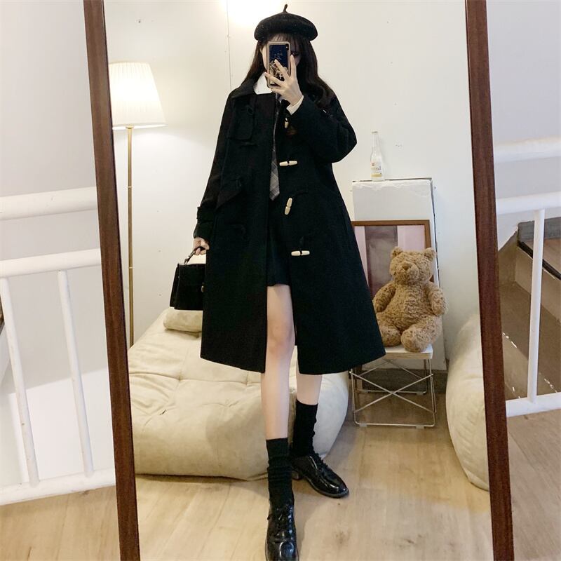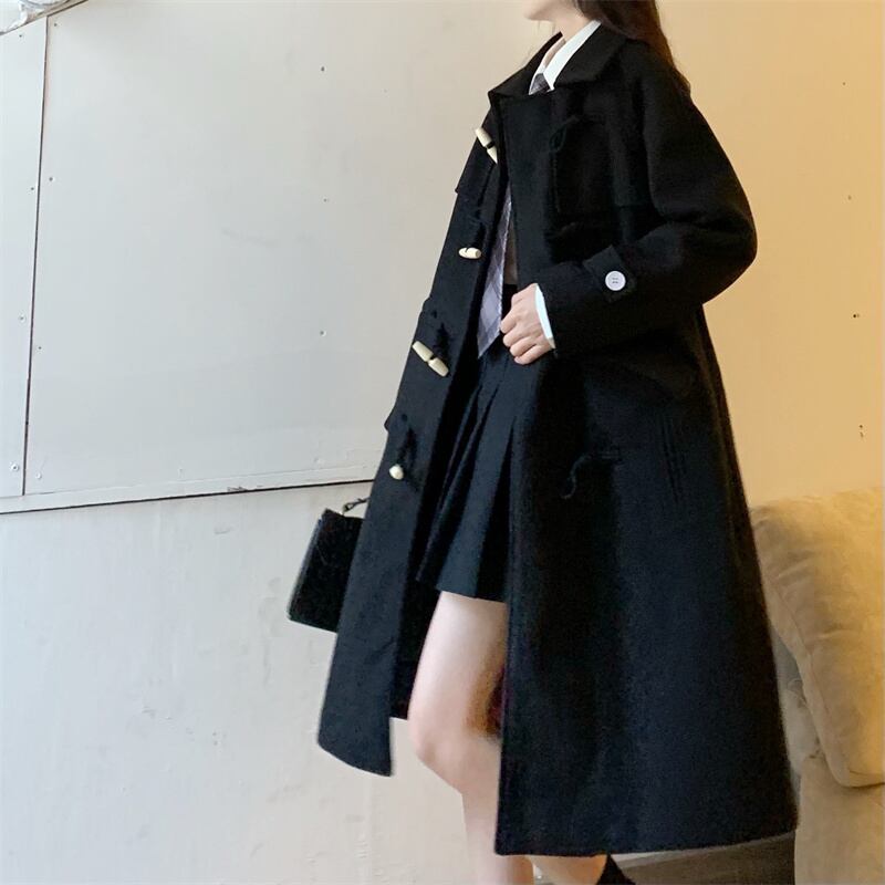 バックルブラックコート ロング コットン 大きめサイズ Xiaofeijia12739238005