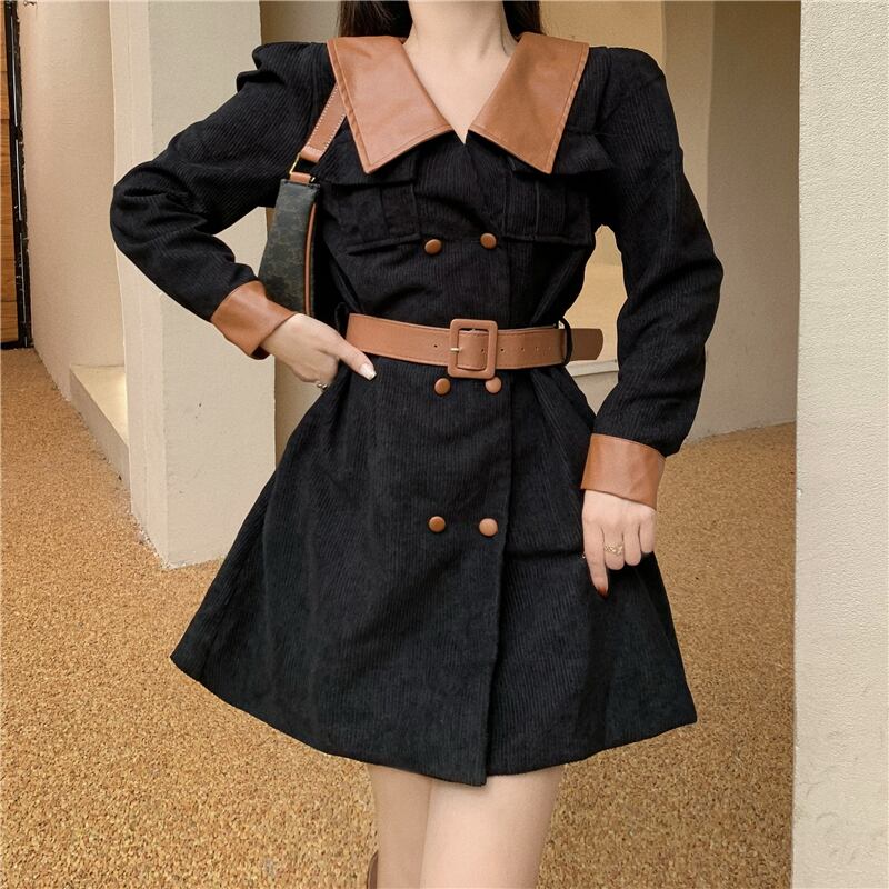 オータムスタイルブラックドレス Aラインスカート ロング 秋物 Xiaofeijia45934934241