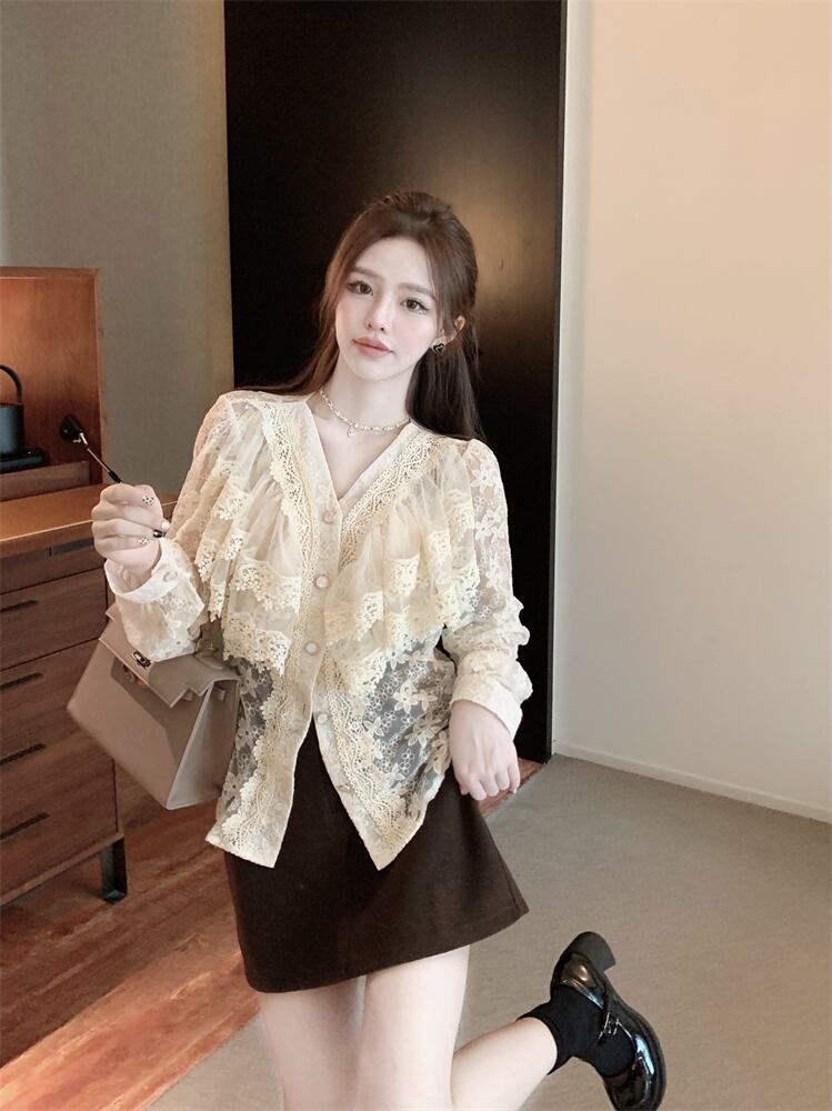 Vネックレーストップス Xiaofeijia70742381914