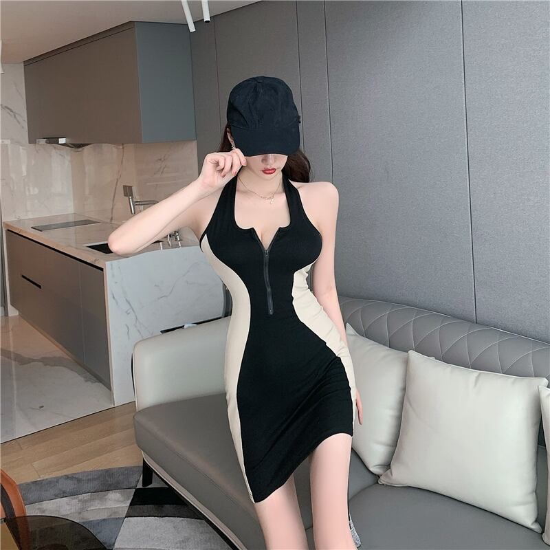 ジッパーバックショートスカート サマーカラー薄手ドレス 夏物 Xiaofeijia87929307929