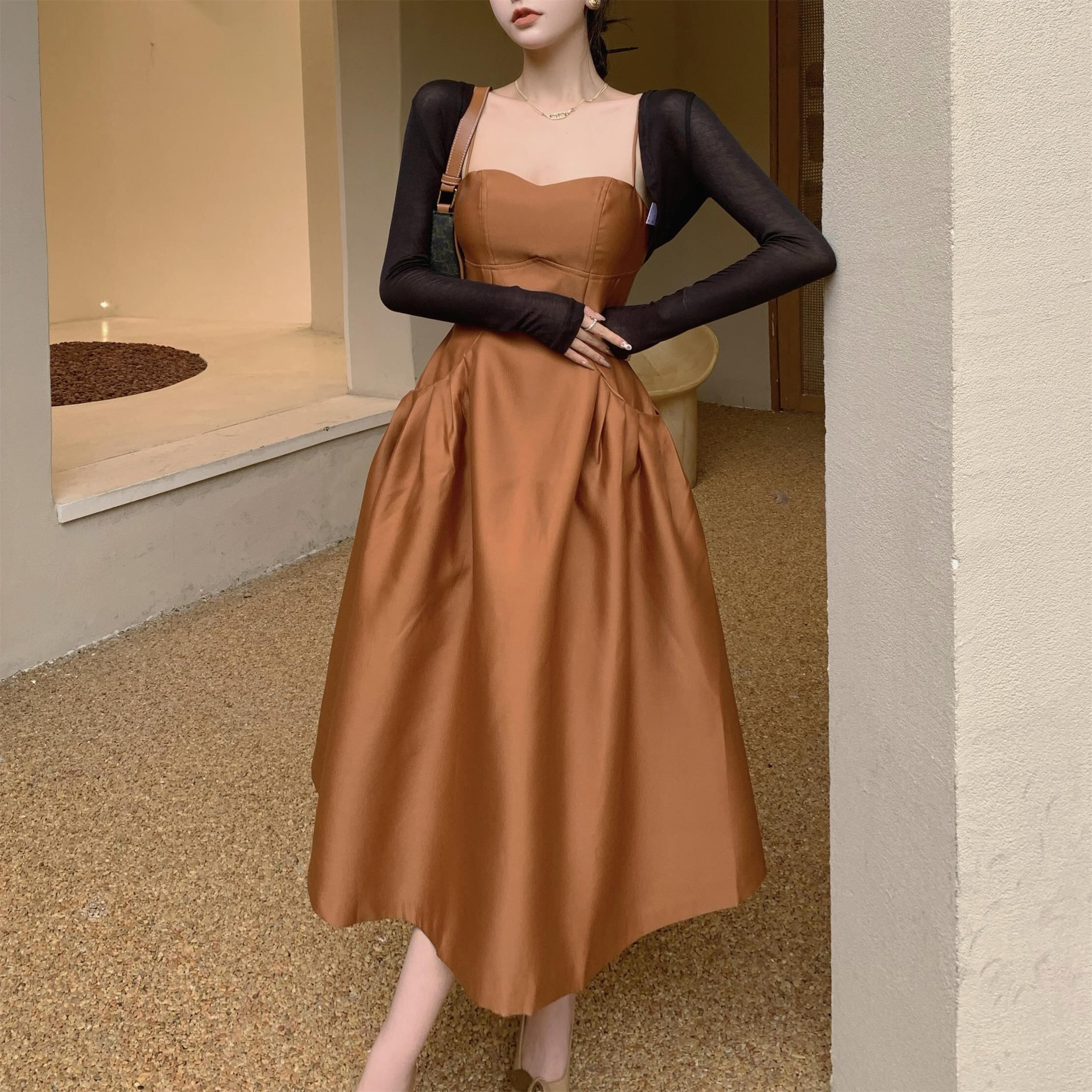 スタイルAラインウェストドレス オータムスカート レース ふわふわ 秋物 Xiaofeijia73751379254