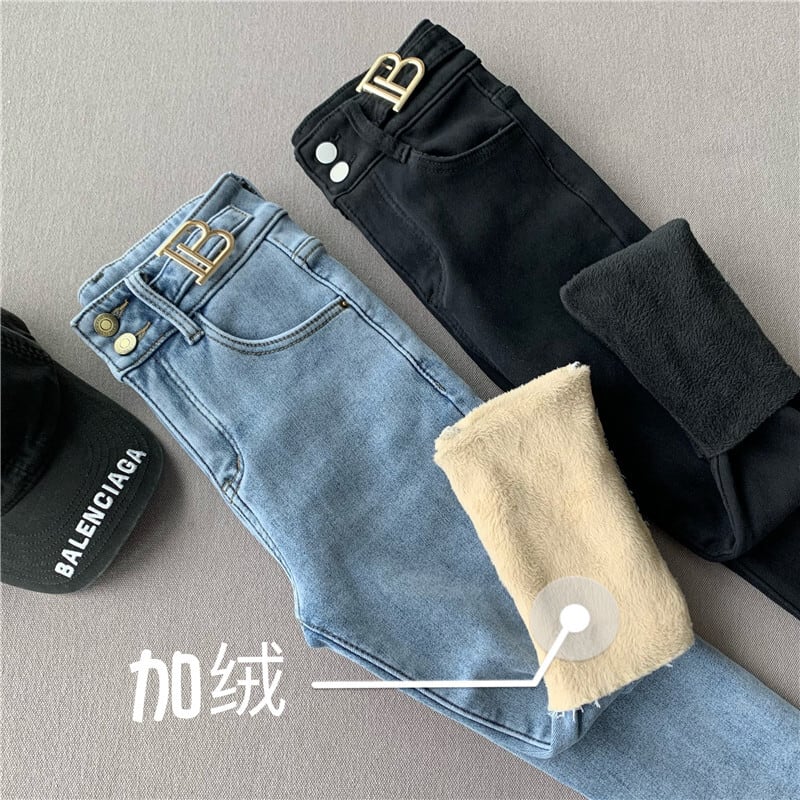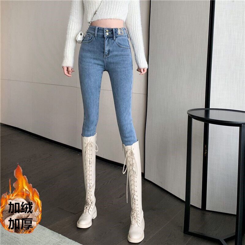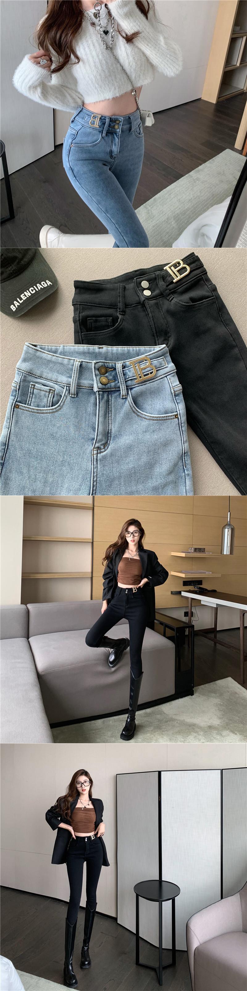 ジーンズ オータムウィンターハイウェストウェストパンツ ブルー 秋物 冬物 Xiaofeijia92741953953