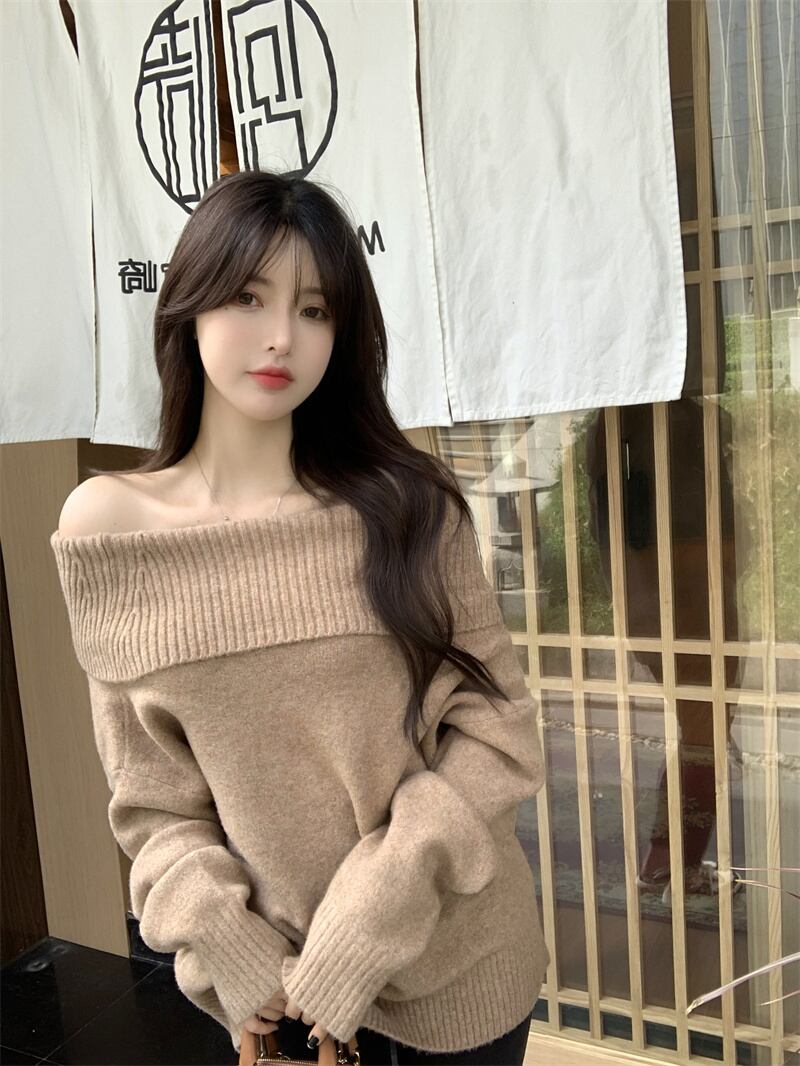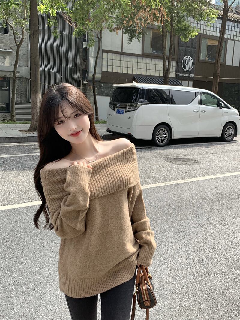 オータムウィンタースタンダードブラウンセーター ルーズシャツ ロング レトロ 秋物 冬物 Xiaofeijia34390093320