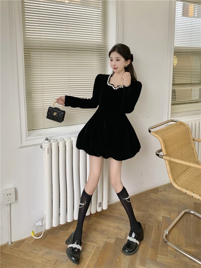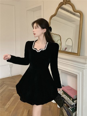スタンダードベルベットカラードレス レトロ スクウェア Xiaofeijia75354155351