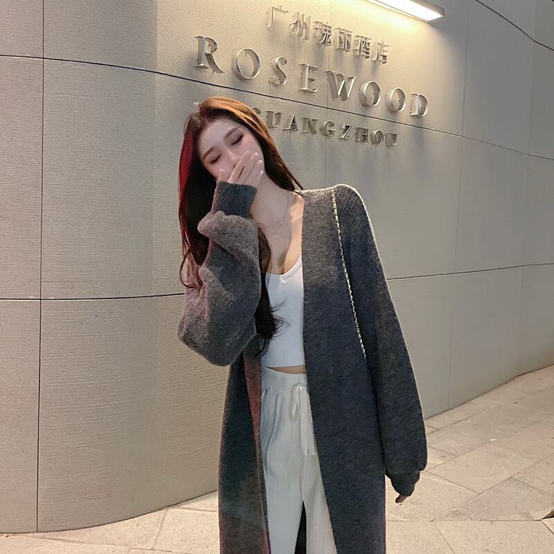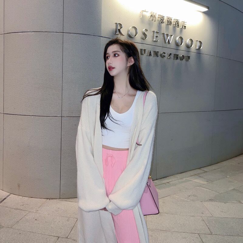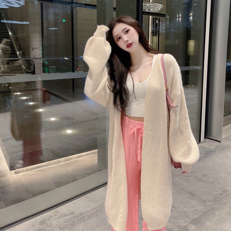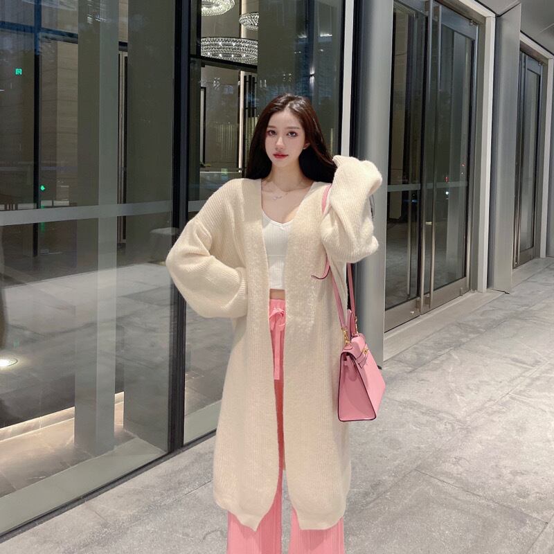 スタイルベージュホワイトセーター コート オータムウィンタールーズスタンダードニットカーディガン ロング レトロ 秋物 冬物 Xiaofeijia35266575460