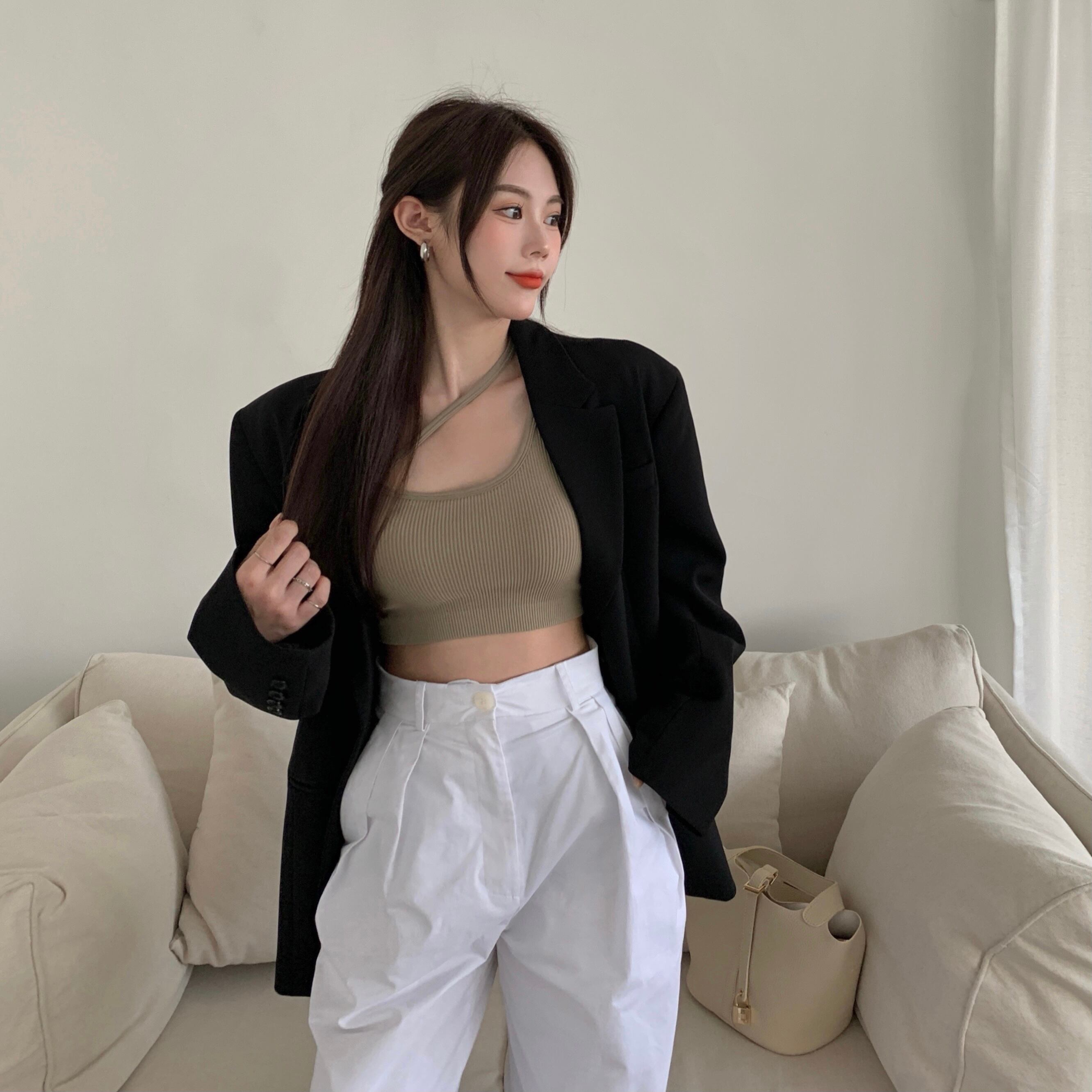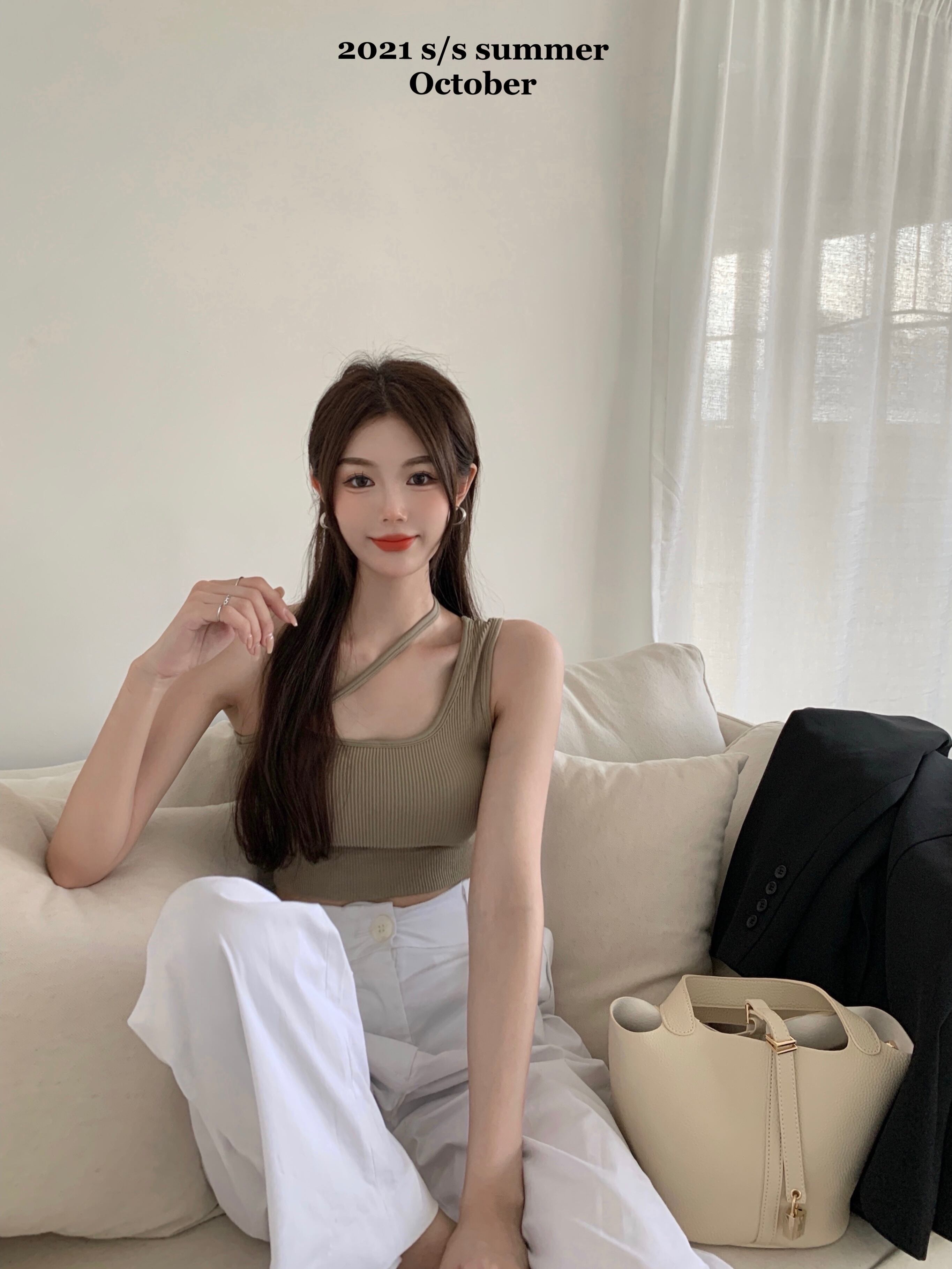 ストレッチショートサマーノースリーブトップス エラスティック 伸縮 夏物 ヨーロピアン Xiaofeijia26047675941
