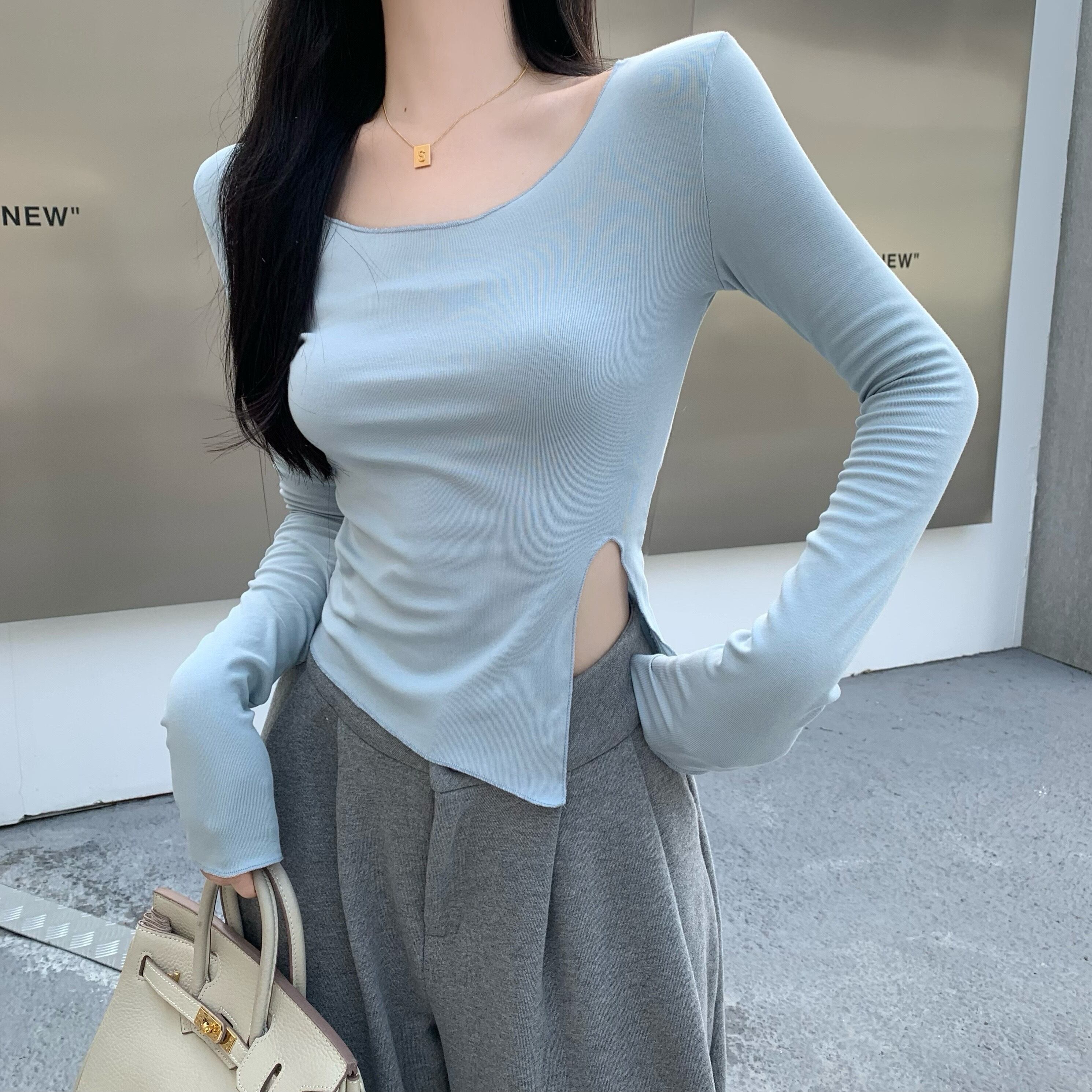 シャツ トップス オータムウィンターショートTシャツ ロング 秋物 冬物 Xiaofeijia17664432673
