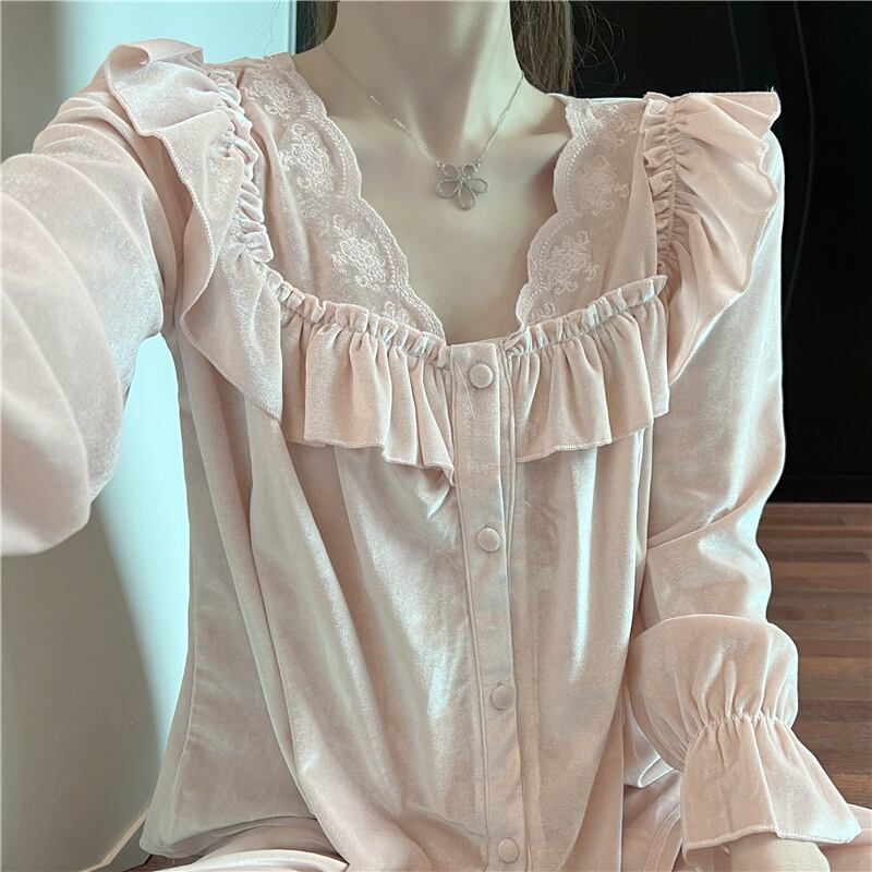 スタイルレースオータムウィンターベルベットレディース ピンク レッド 刺繍 大人ガーリー スウィート キュート カジュアル 秋物 冬物 Xiaofeijia59662858399