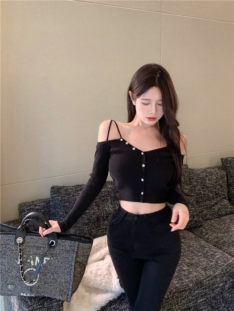 スリムフィットTシャツ ロング ペンダント オフショルダー Xiaofeijia98457725465