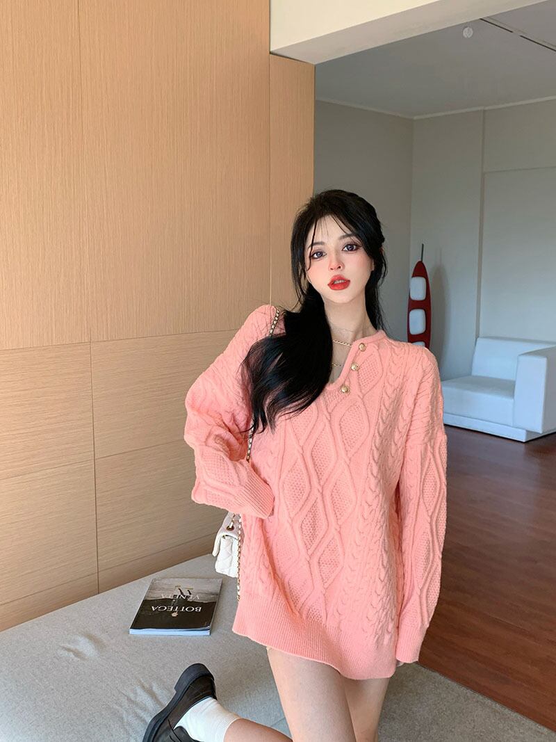 セーター オータムウィンタープルオーバー ニットトップス ピンク 秋物 冬物 Xiaofeijia2227687390