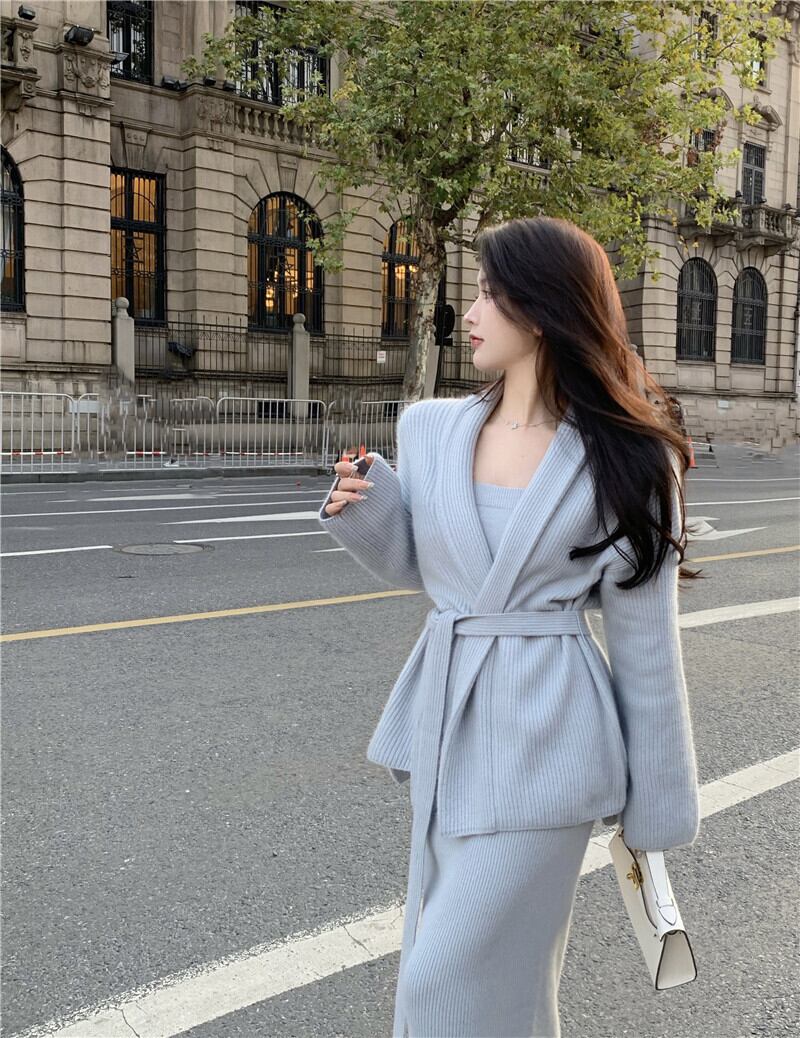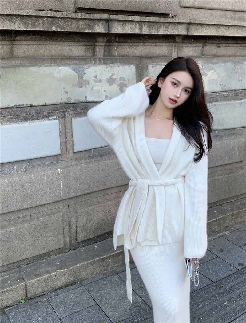 セーター ジャケット トップス ハイウェストウェストスカート オータムニット レース 秋物 レースアップ Xiaofeijia52111422316