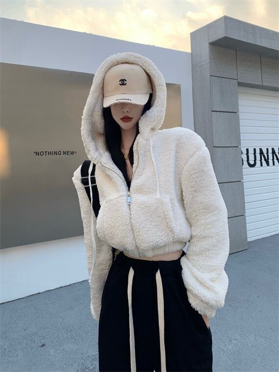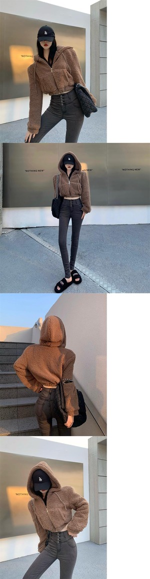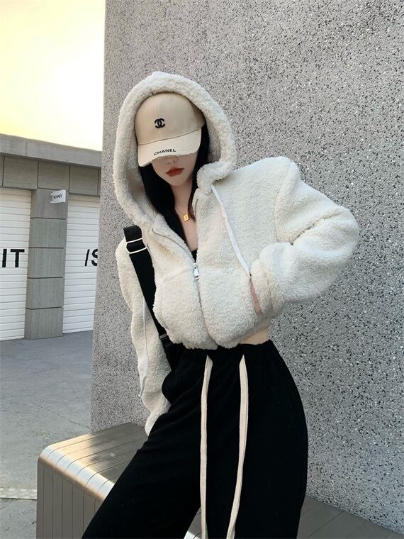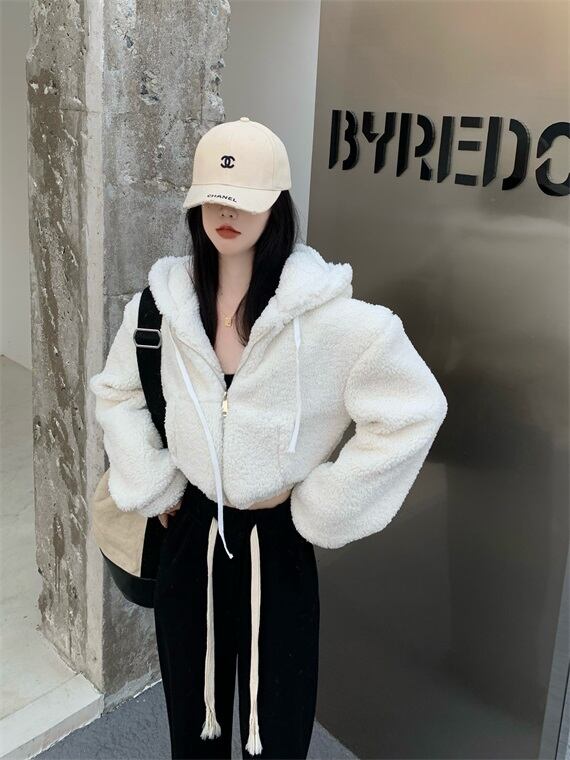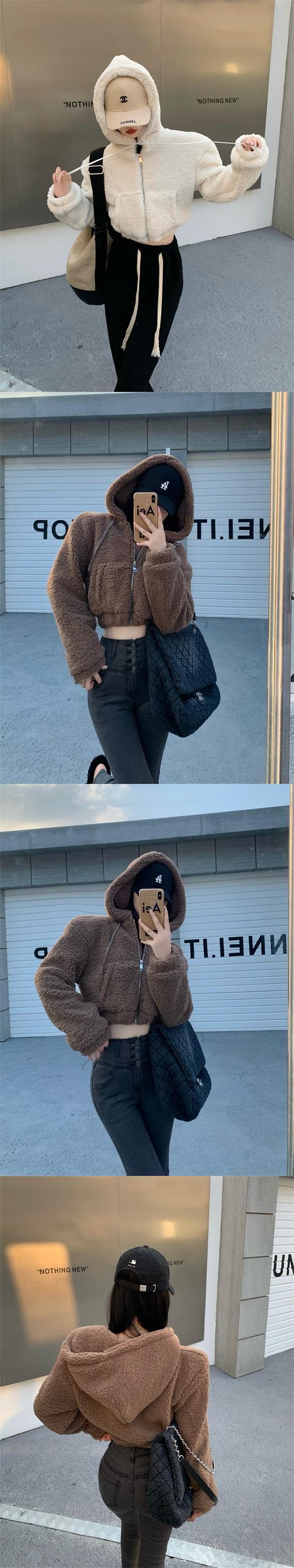 オータムウィンタースタンダードショートファーコート フードルーズカジュアルジャケット トップス レトロ ストリート 秋物 冬物 Xiaofeijia32129033894