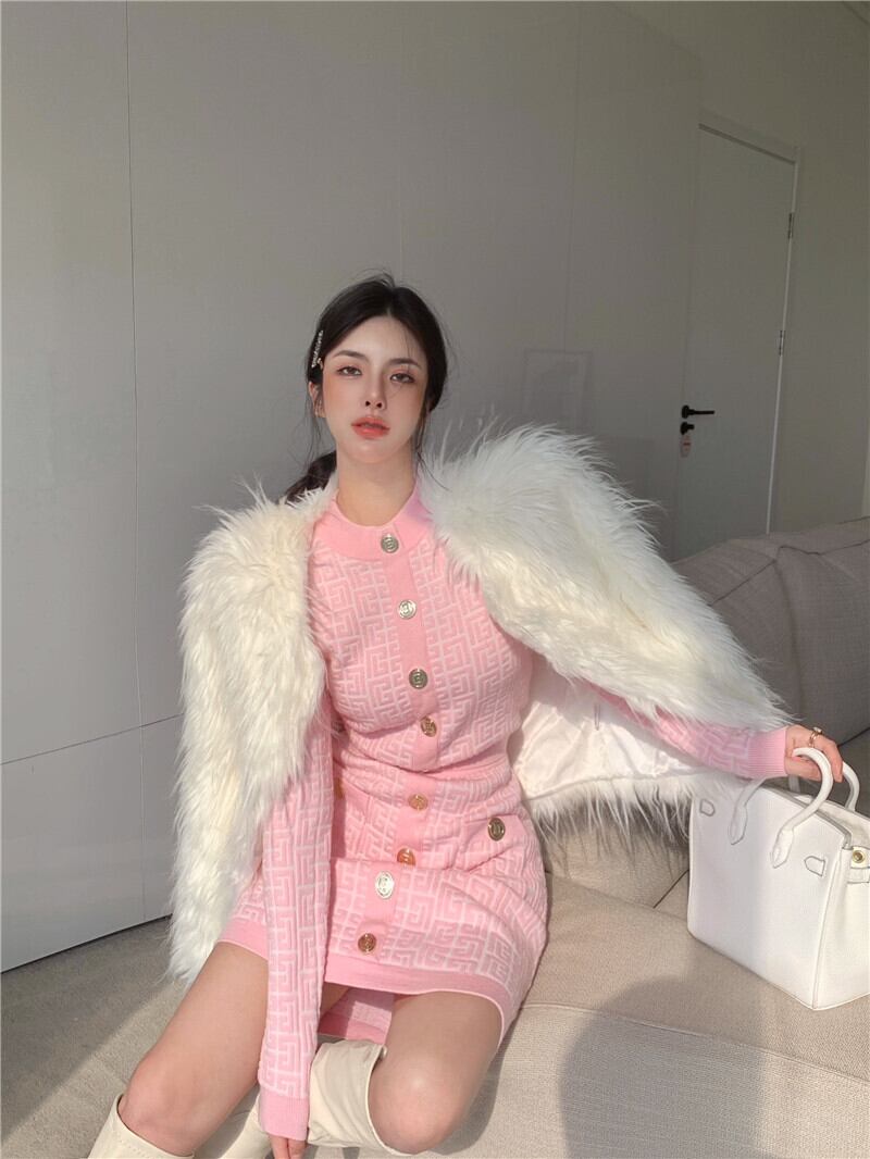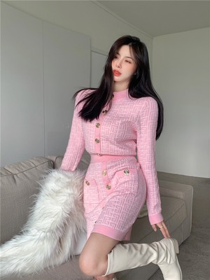 スタイルパターンフェイクウールオータムショートブラウス ハイウェストウェストスカート レディース ロング 秋物 ファー Xiaofeijia38939975392