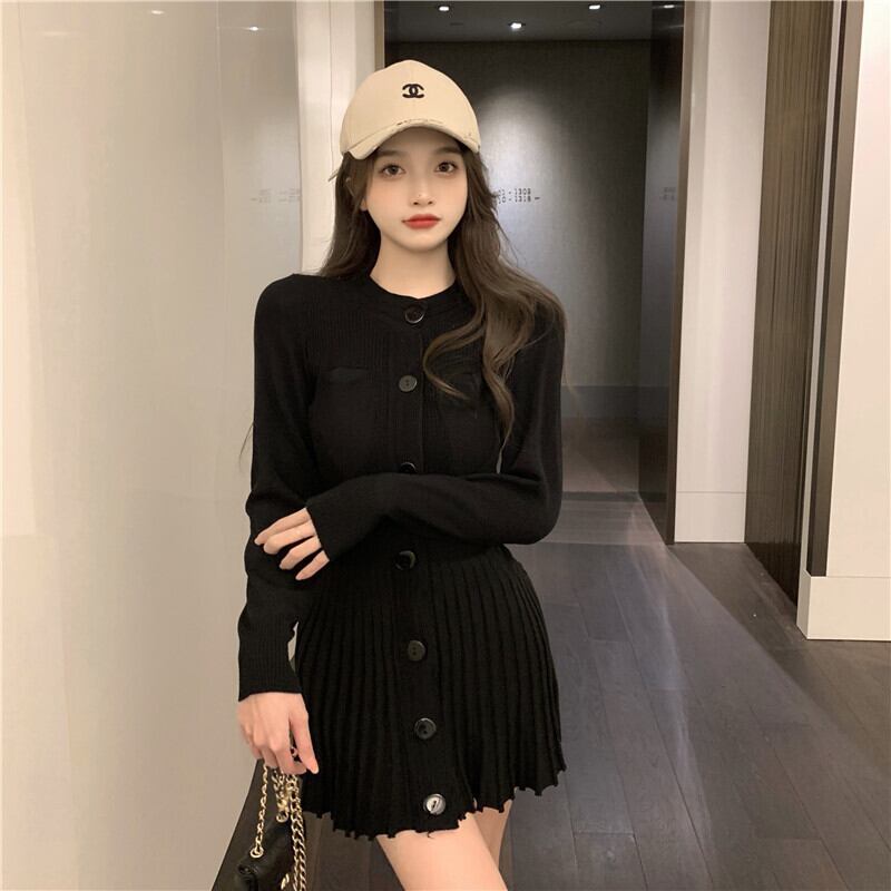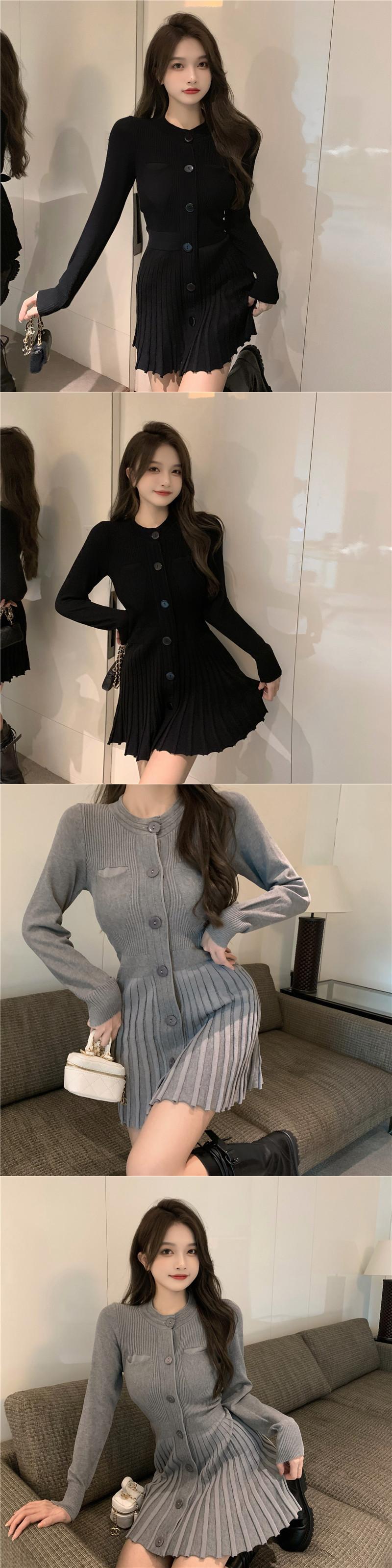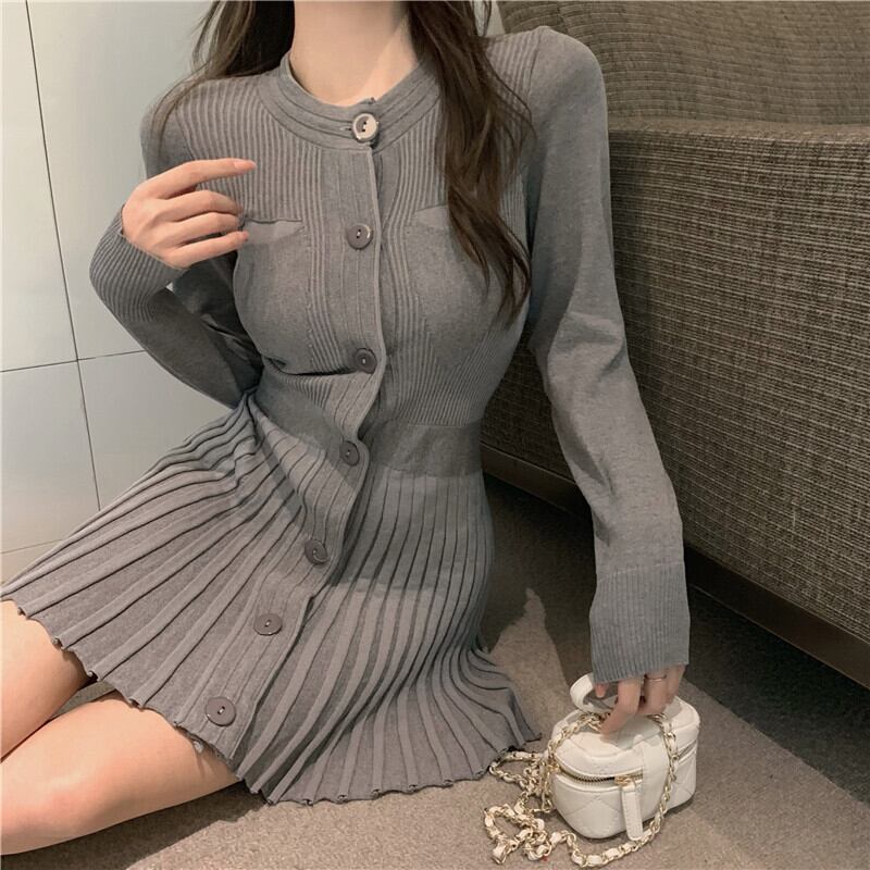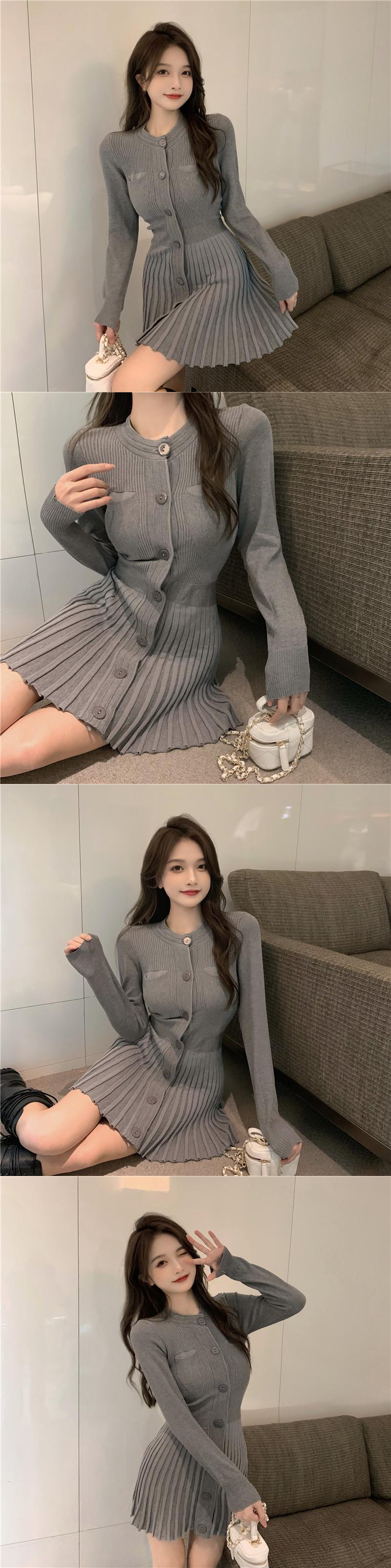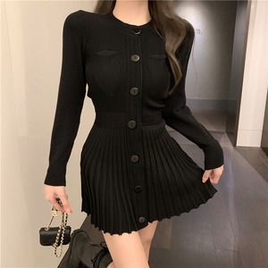 ニットドレス コート オータムウィンターグレープリーツスカート ロング 秋物 冬物 Xiaofeijia14405237604