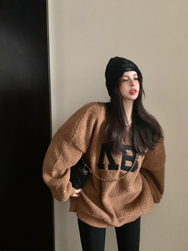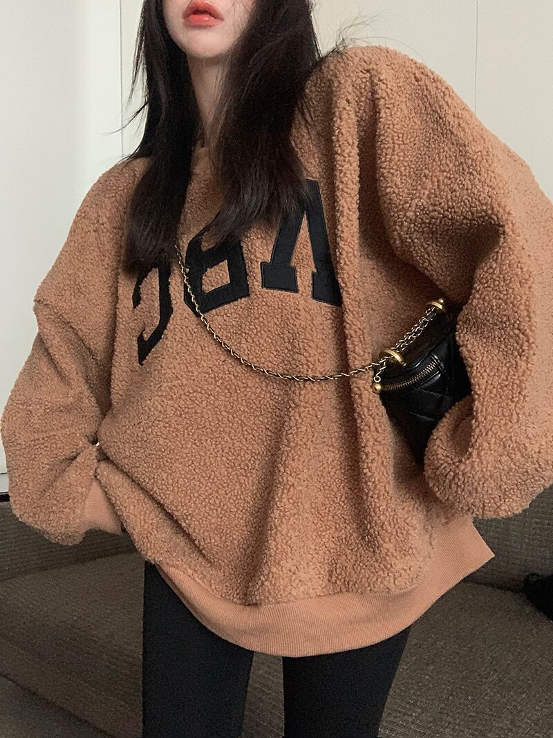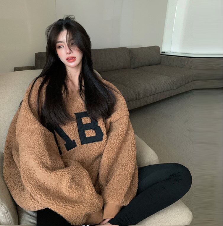 フードセーター ウィンターベルベットウールコート ルーズブラウス 冬物 Xiaofeijia35971134554
