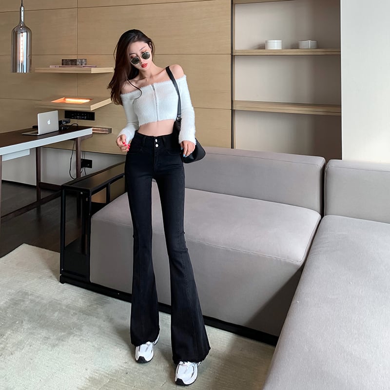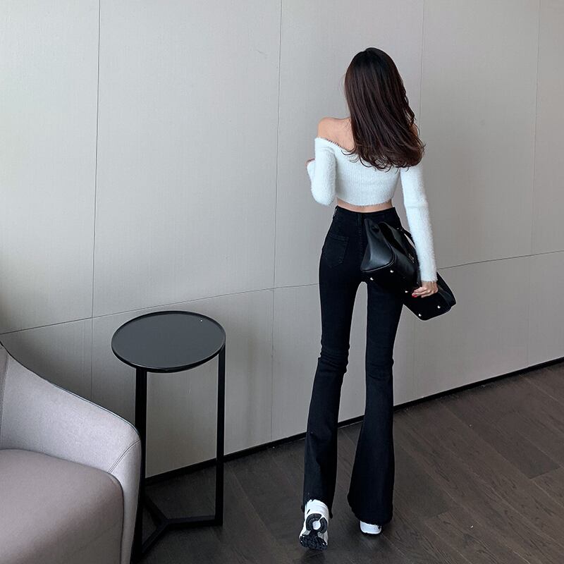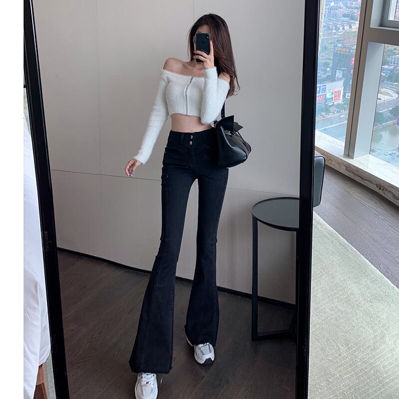 オータムウィンターハイウェストウェストジーンズ レディーススタンダードスキニーパンツ ブラック レッド レトロ 秋物 冬物 Xiaofeijia13566342740