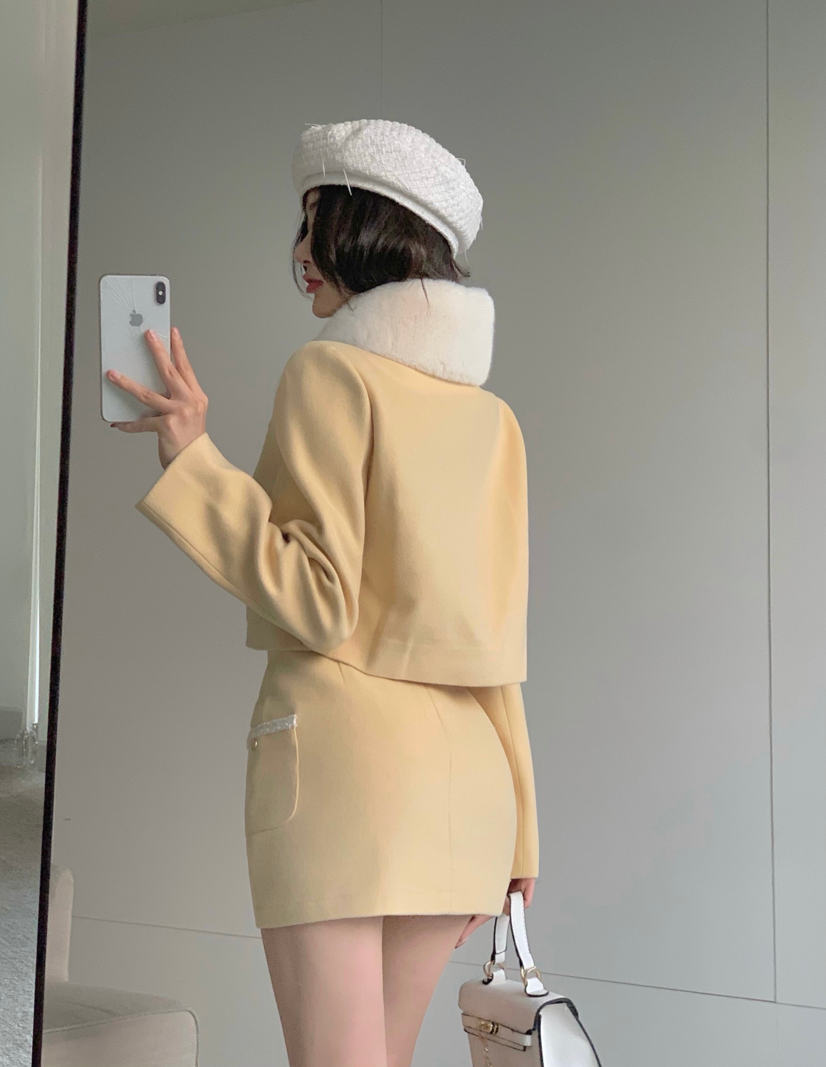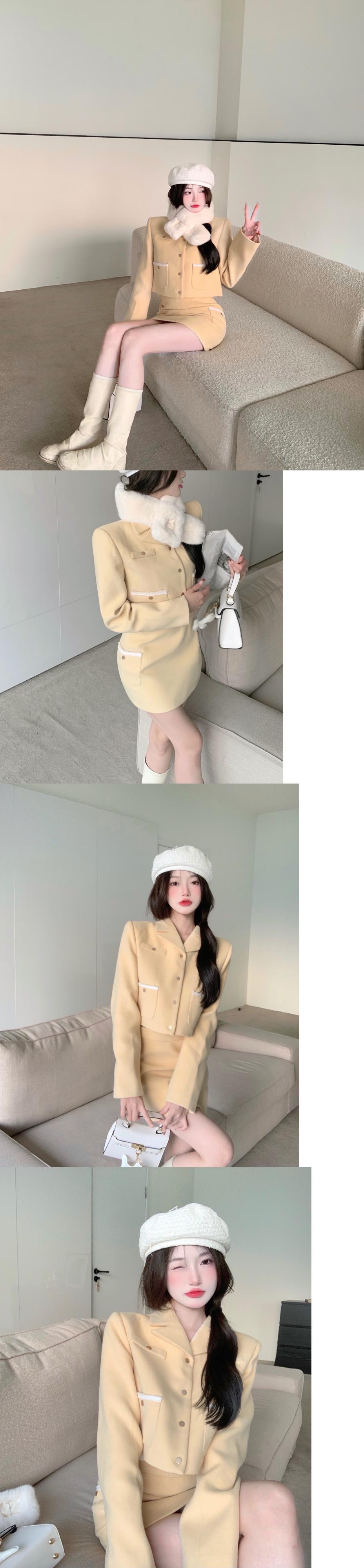 スタイルスタンダードショートコート スカート ファースカーフ セット レトロ ピュア Xiaofeijia48813793140