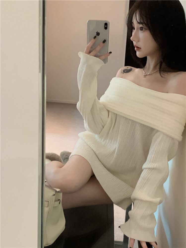 トップス セーター オータムスタイルニット 秋物 オフショルダー Xiaofeijia59331861755