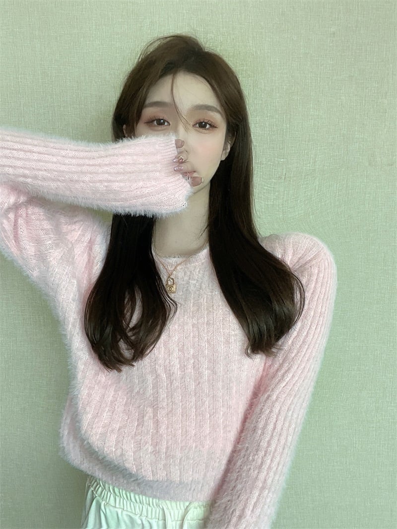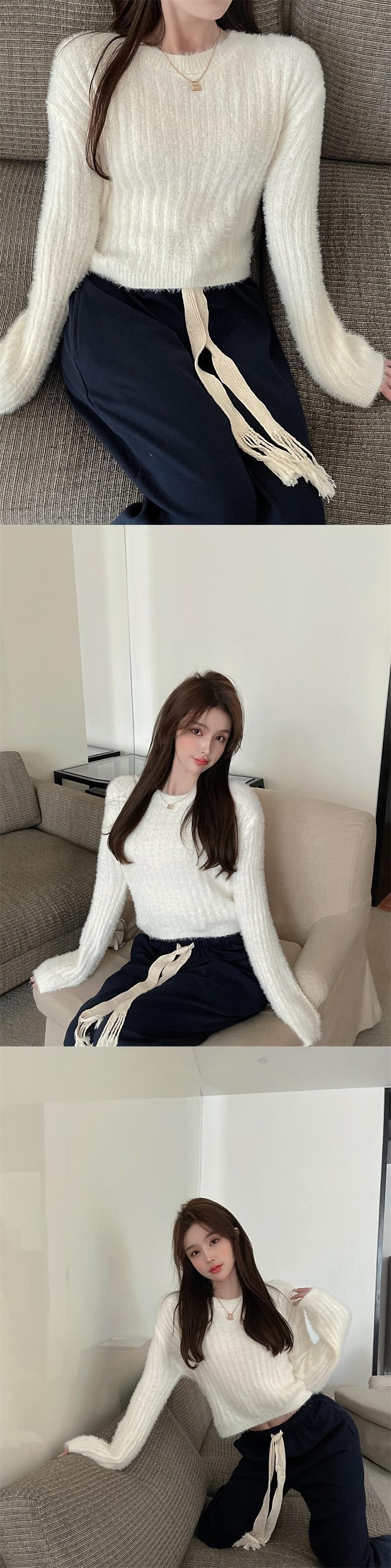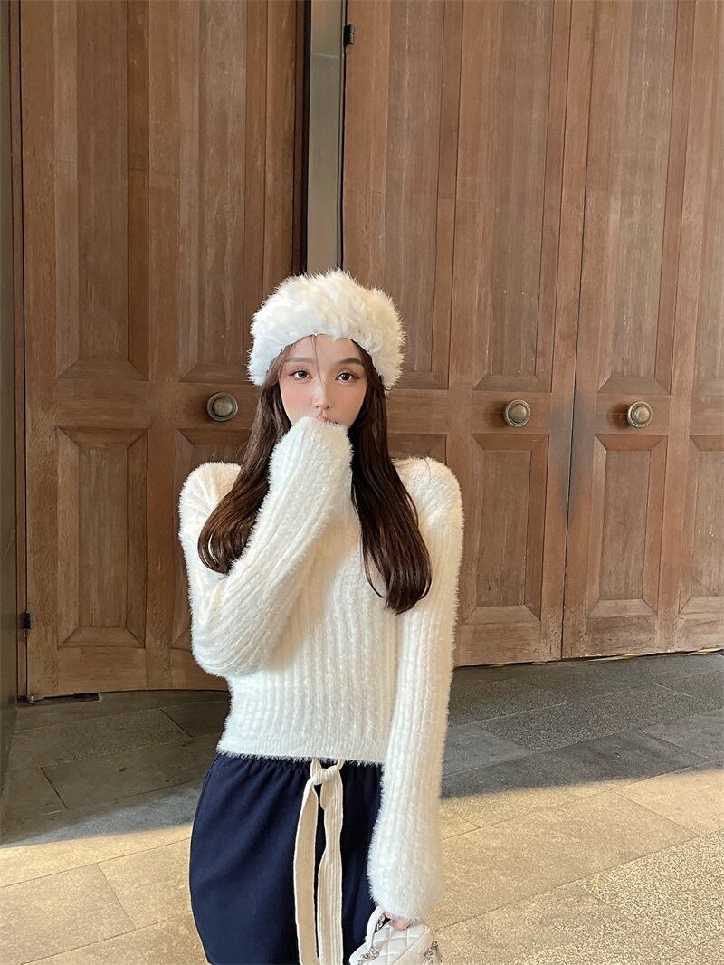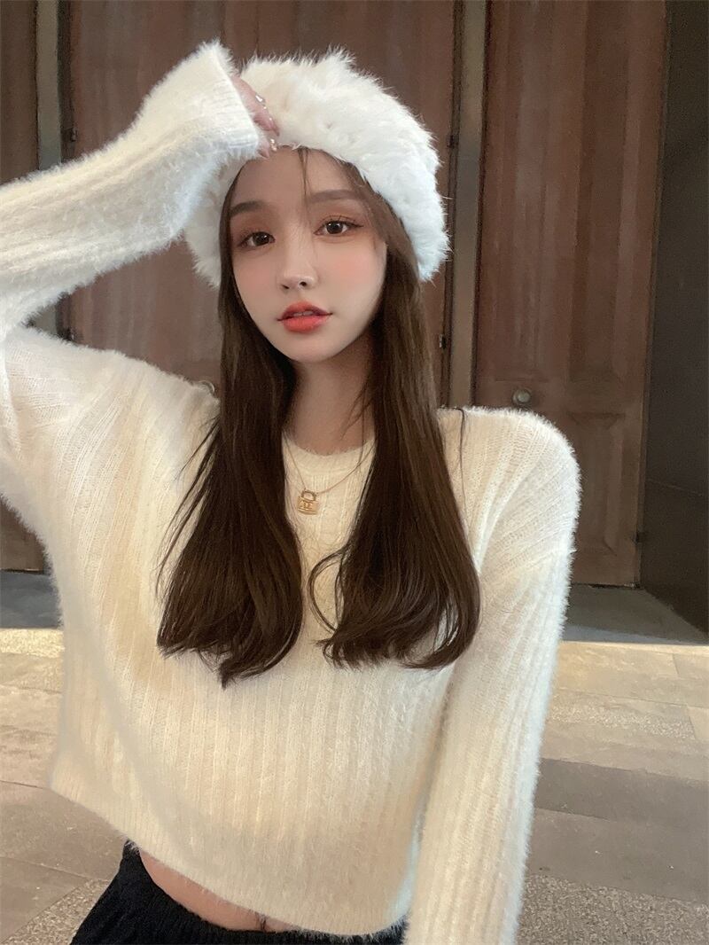 フェイクセーター ショートプルオーバー オータムウィンターブラウス ロング 秋物 冬物 ファー Xiaofeijia52833241814