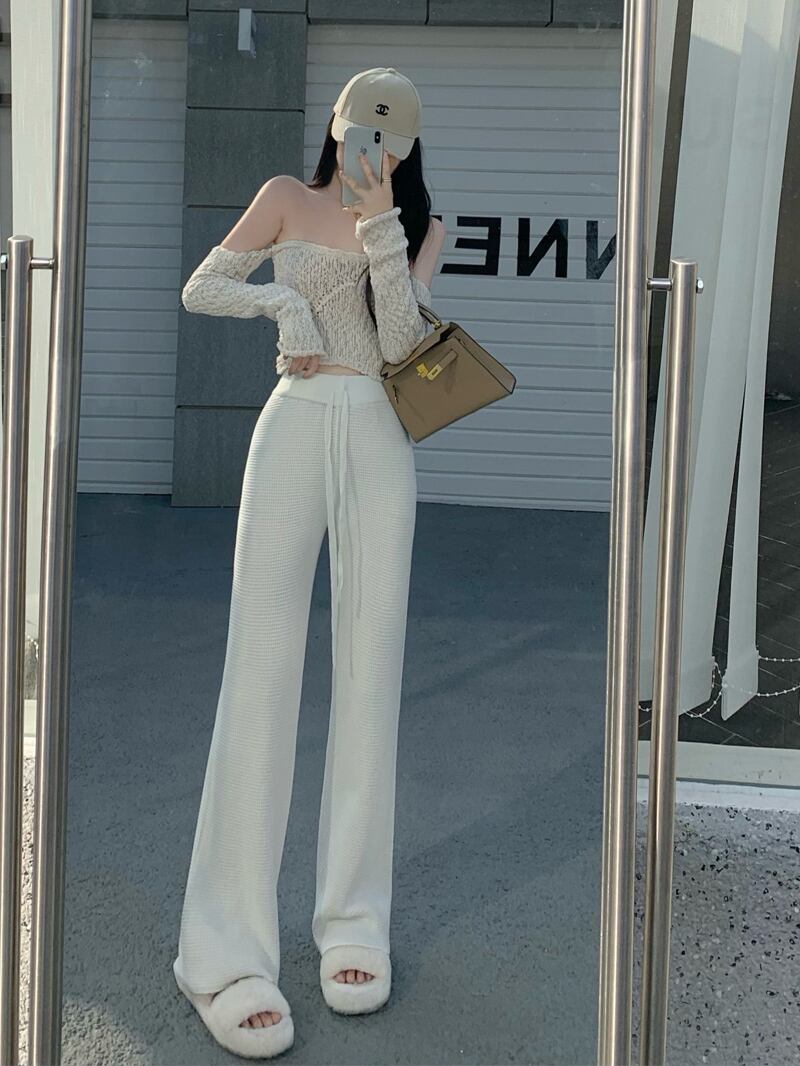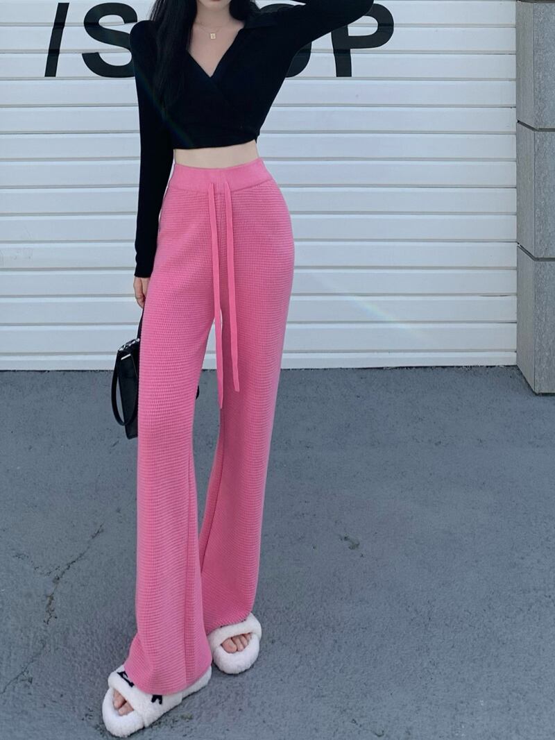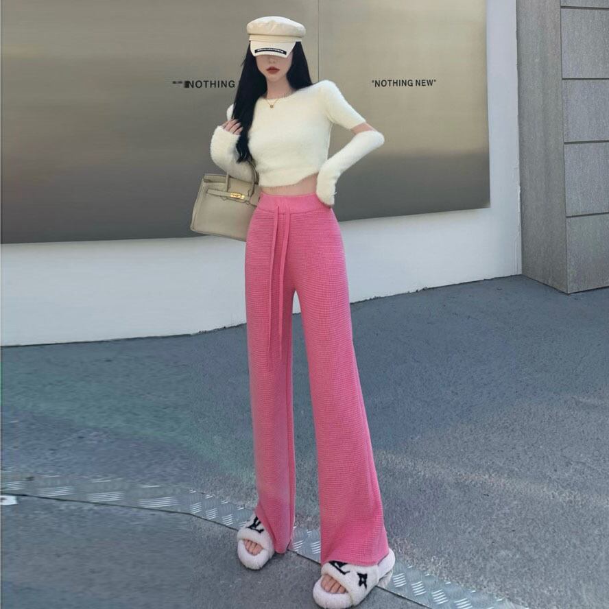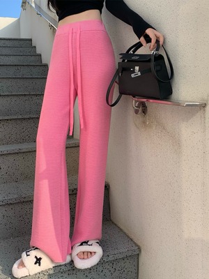 パンツ オータムウィンターハイウェストニットカジュアルロング 秋物 冬物 Xiaofeijia45370717460