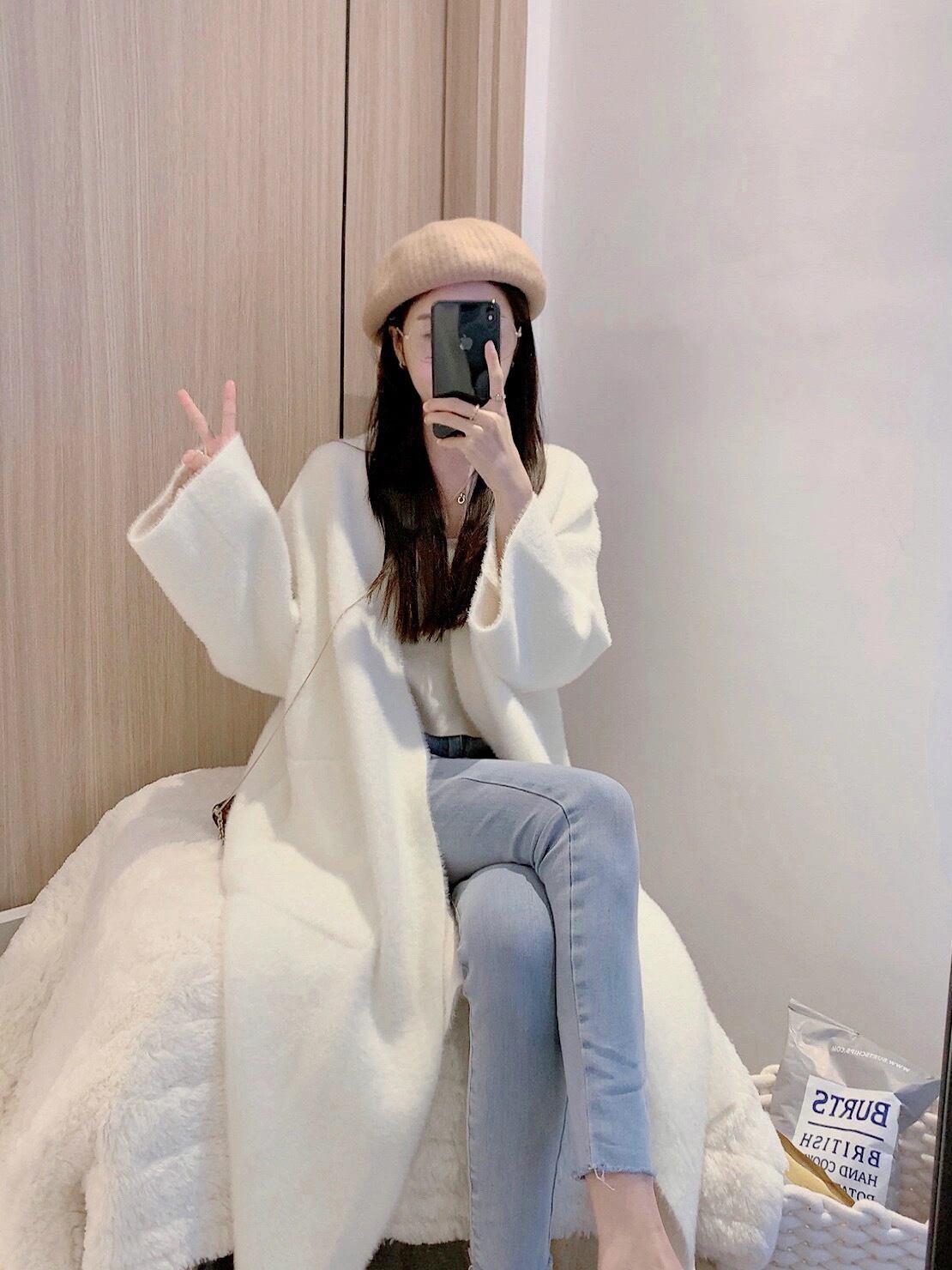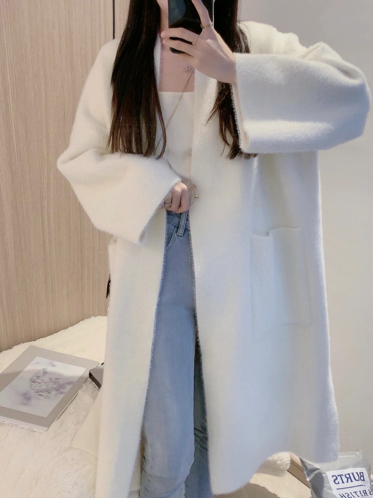 ベージュカーディガンセーター コート オータムウィンタールーズニット 秋物 冬物 Xiaofeijia92230301515