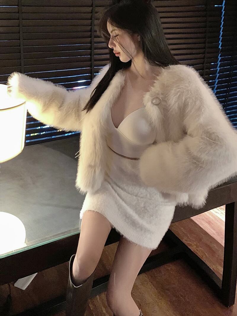 ウィンタースタイルファーコート ホワイトショート 冬物 Xiaofeijia56728162472