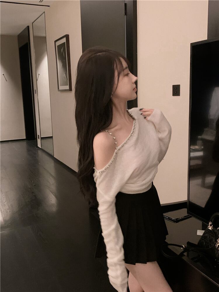ニットセーター ルーズブラウス トップス オータム 秋物 オフショルダー Xiaofeijia12957704532