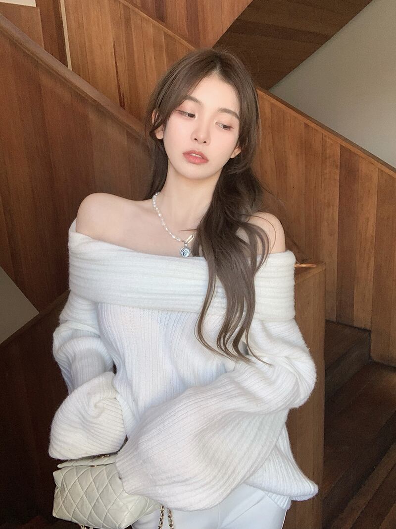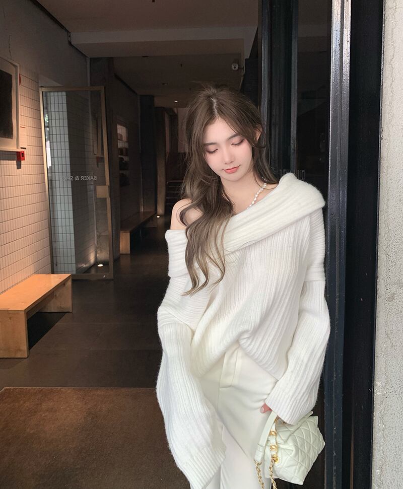 ストラップレスカラースタイルセーター レディースフードオータムウィンターニットトップス ロング 秋物 冬物 Xiaofeijia72422419146