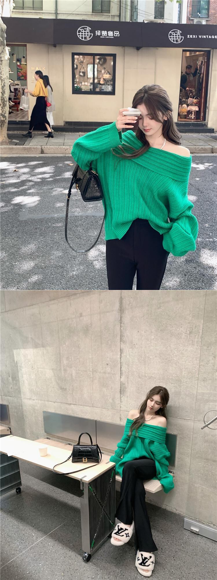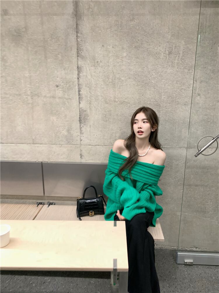 色:緑のセーター,白いセーター,ブラックカジュアルパンツ【プラスカシミア】,ホワイトカジュアルパンツ【プラスカシミア】