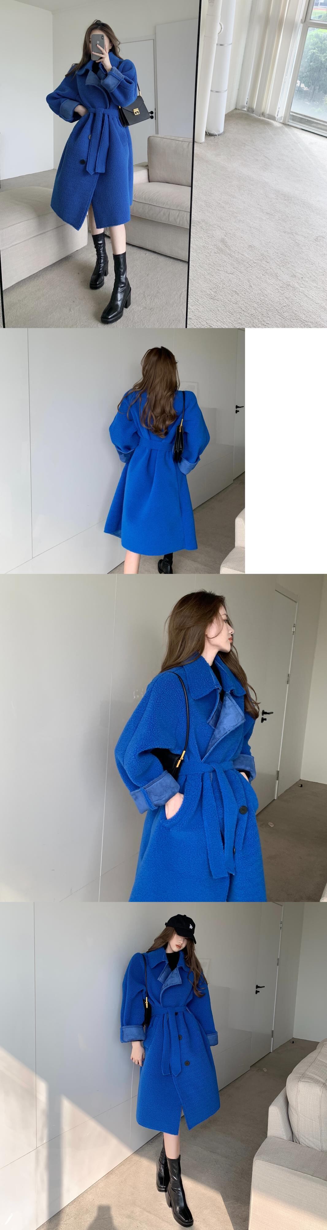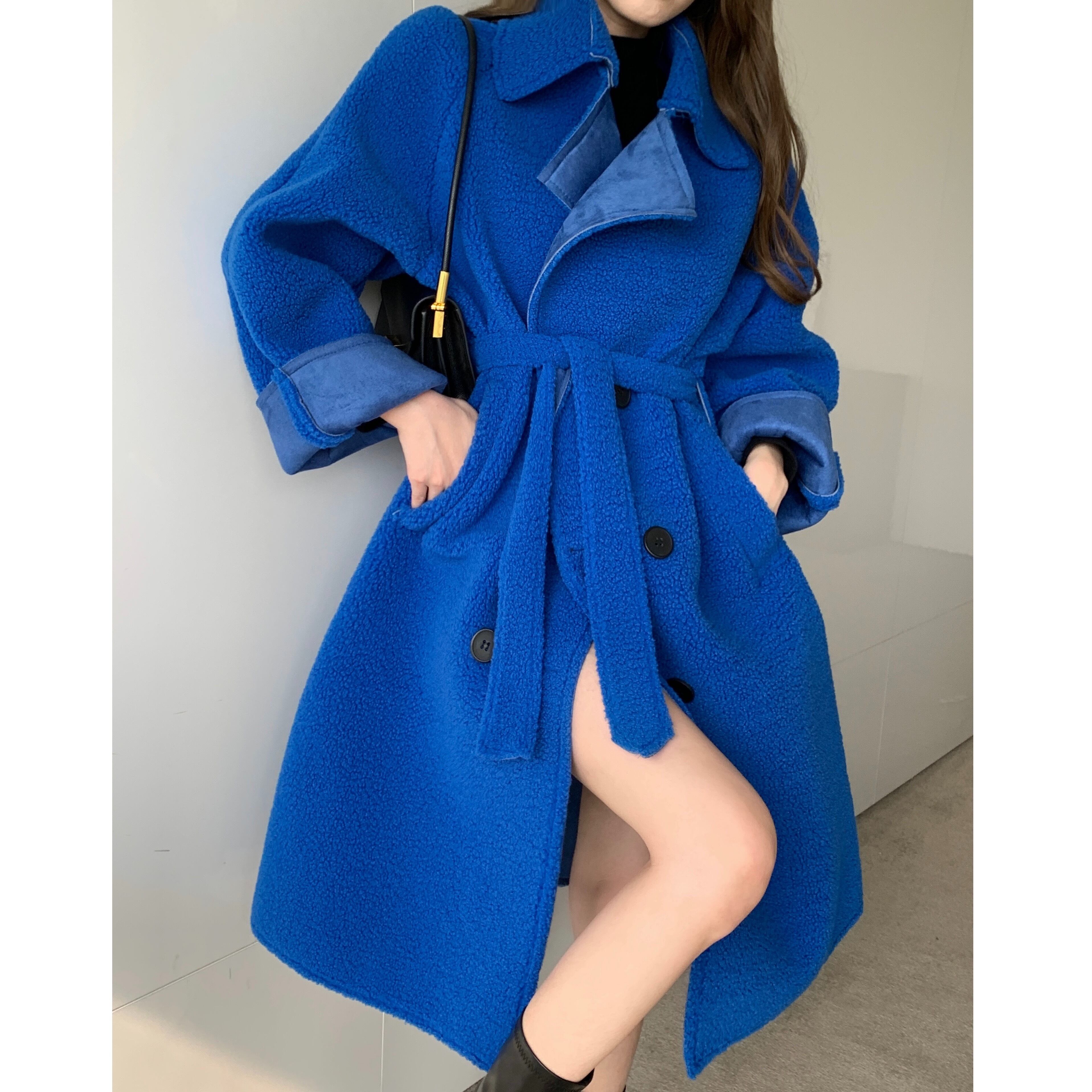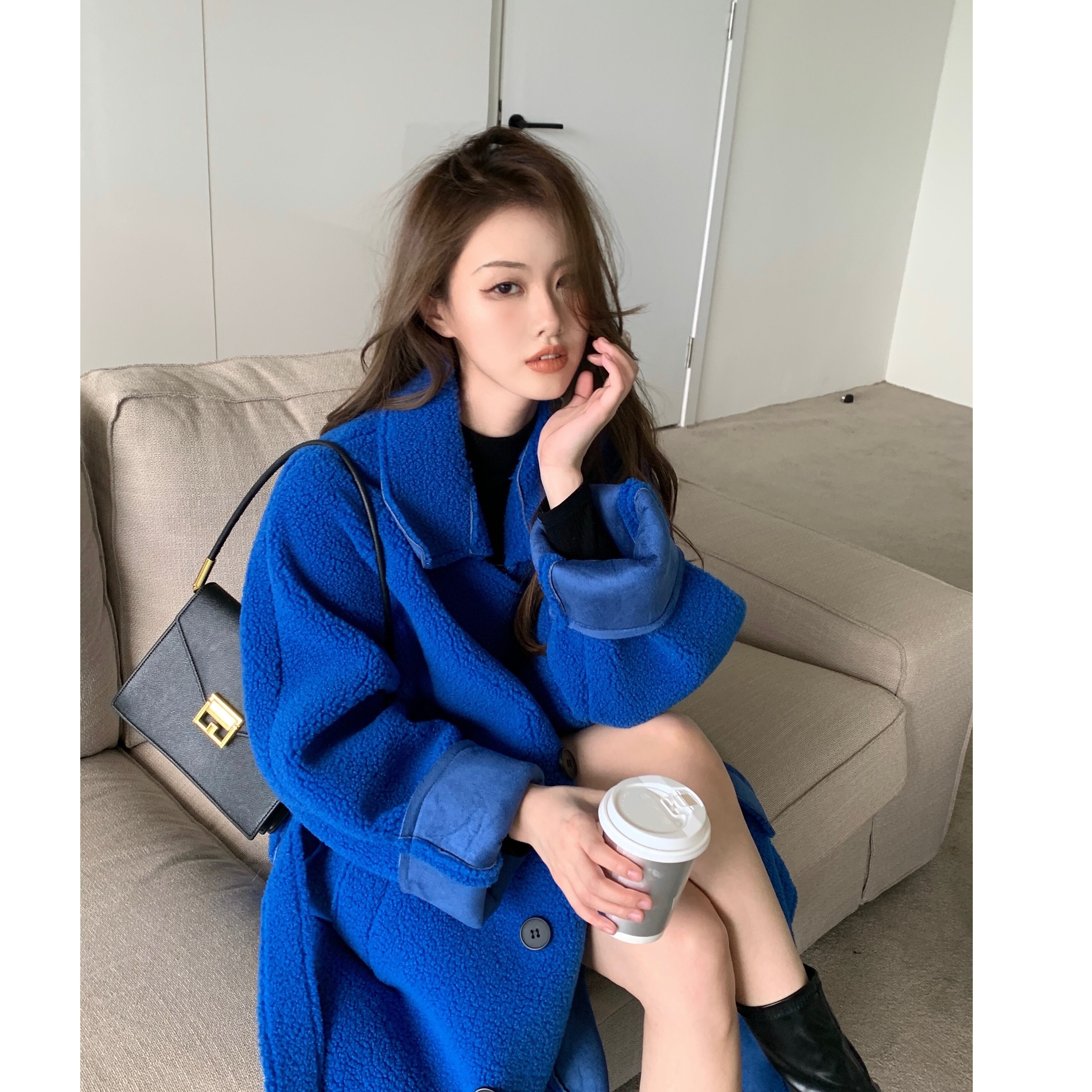 フェイクファーコート オータムウィンタースタイルブルー 秋物 冬物 Xiaofeijia19635562960