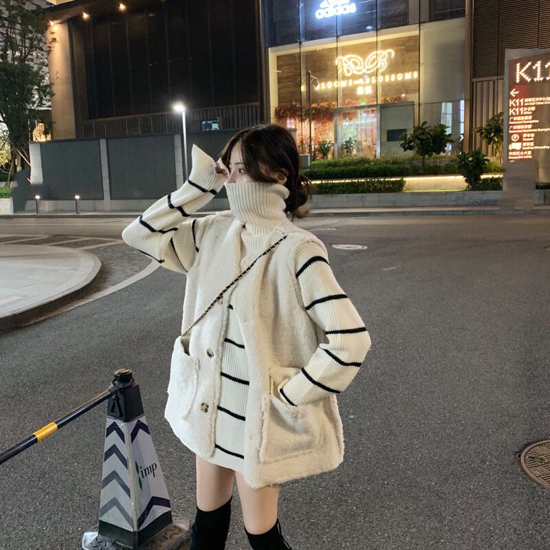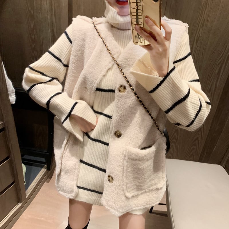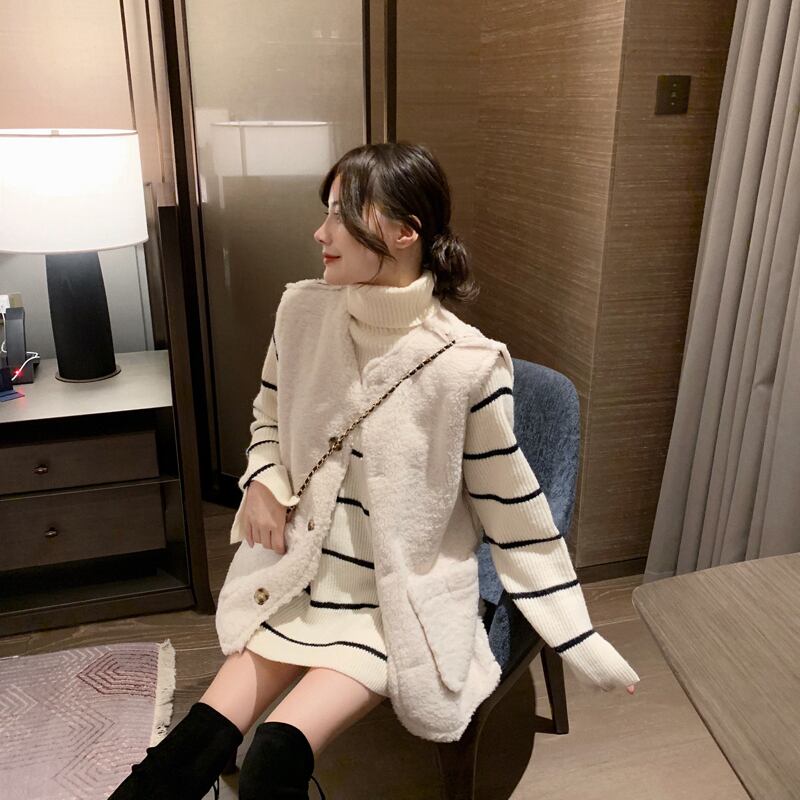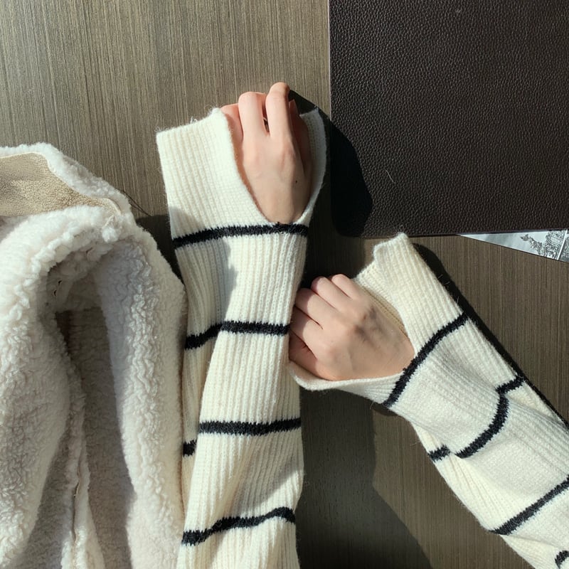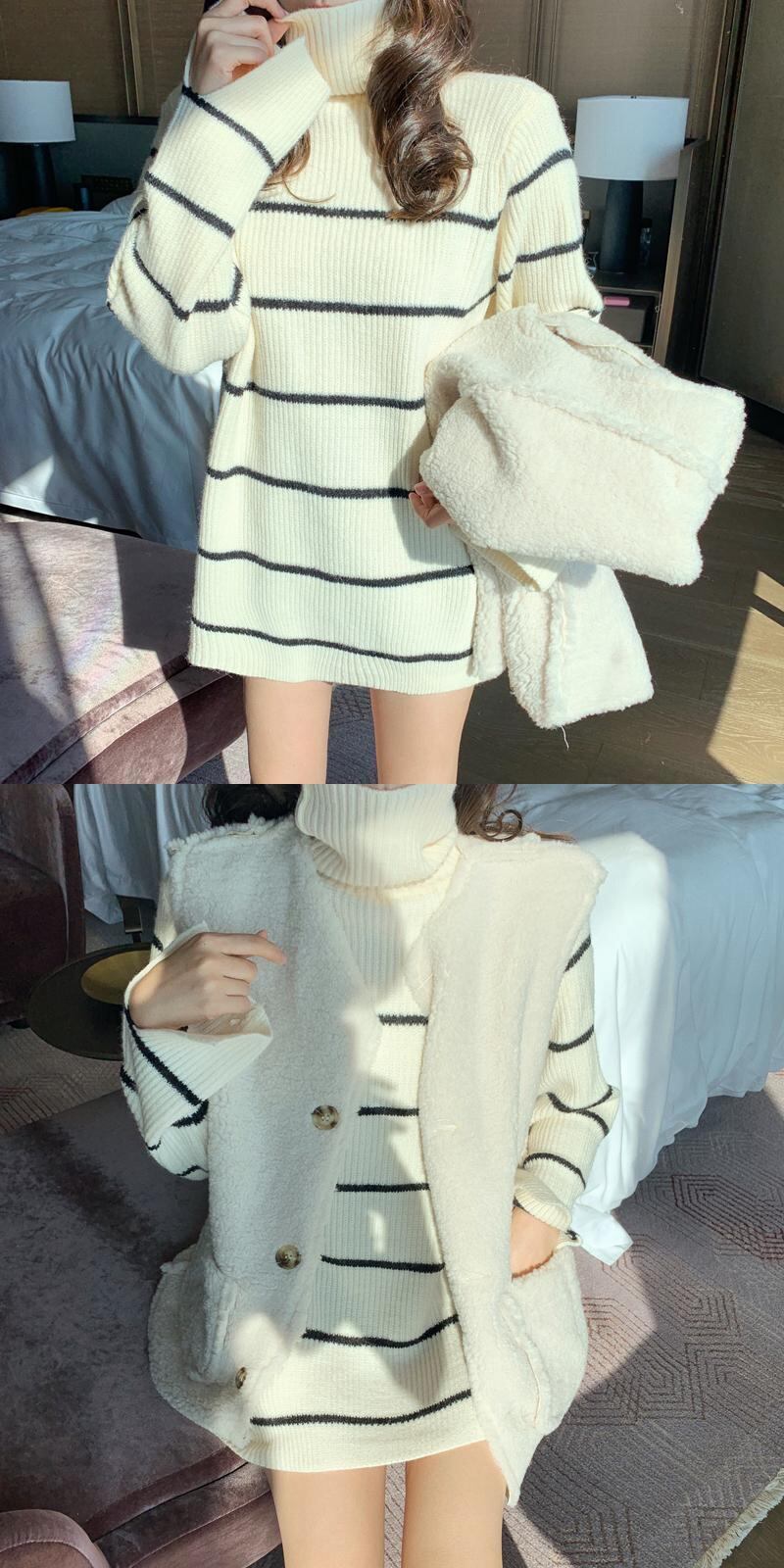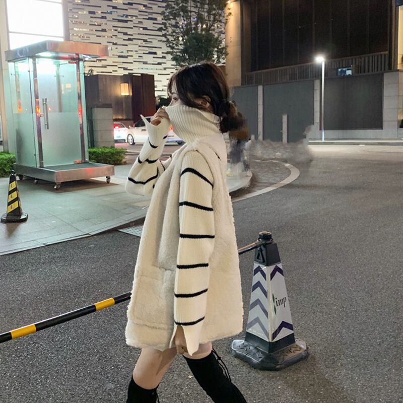 オータムウィンターストライプセーター ファー 秋物 冬物 Xiaofeijia27639233612