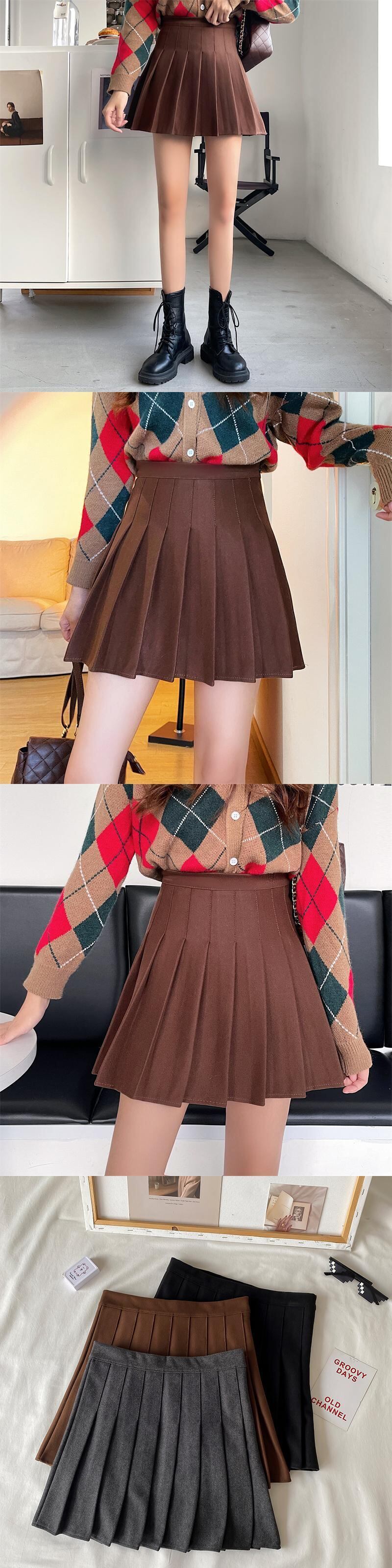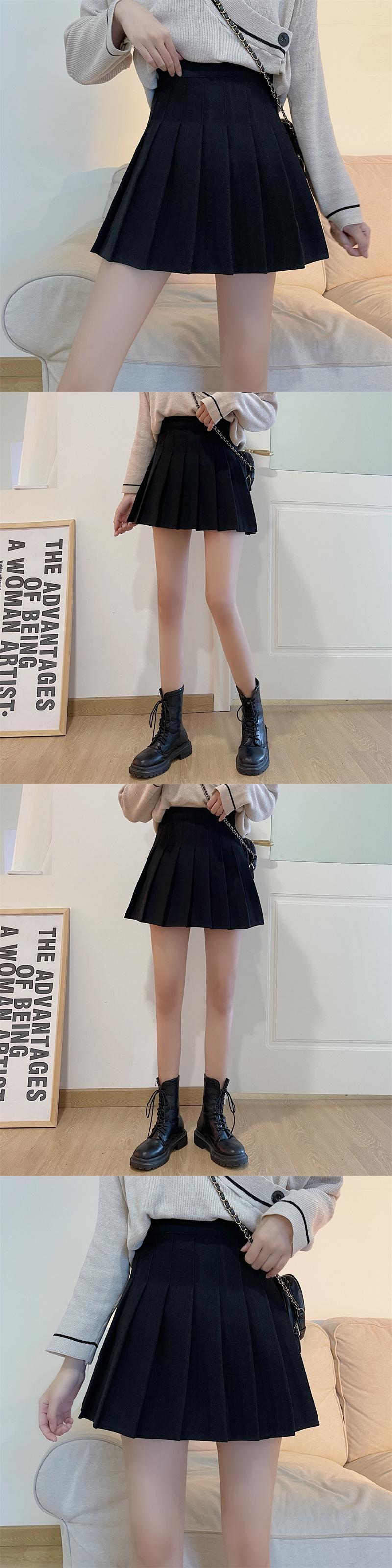 プリーツハイウェスト薄手オータムウィンターAラインショート 秋物 冬物 スカート Xiaofeijia79257750492