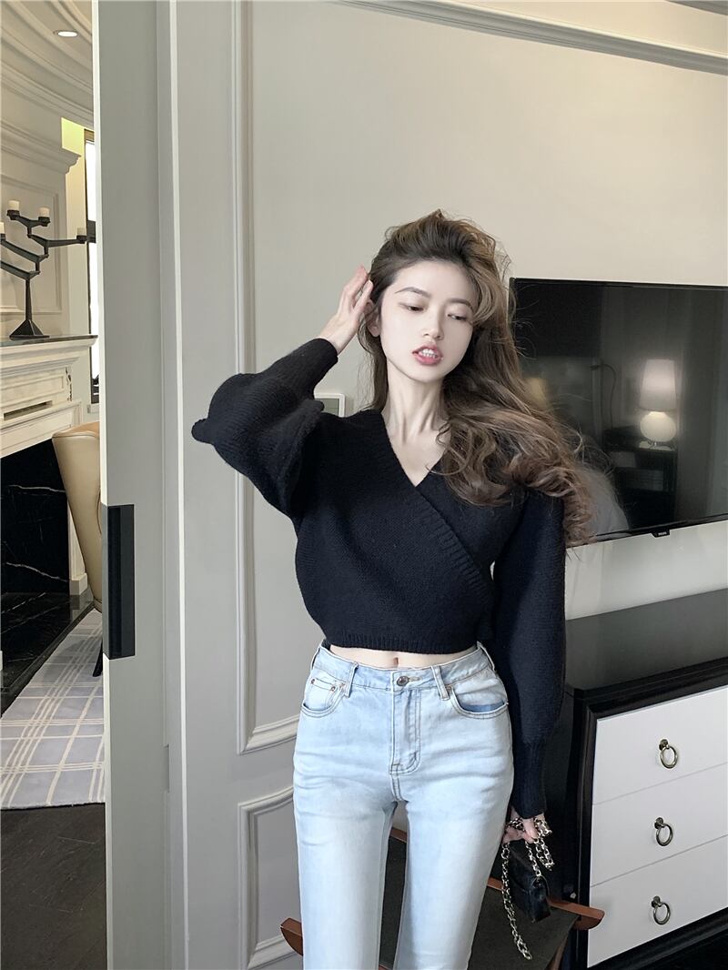 カーディガンニットシャツ ウィンター レース 冬物 レースアップ Xiaofeijia67934040193