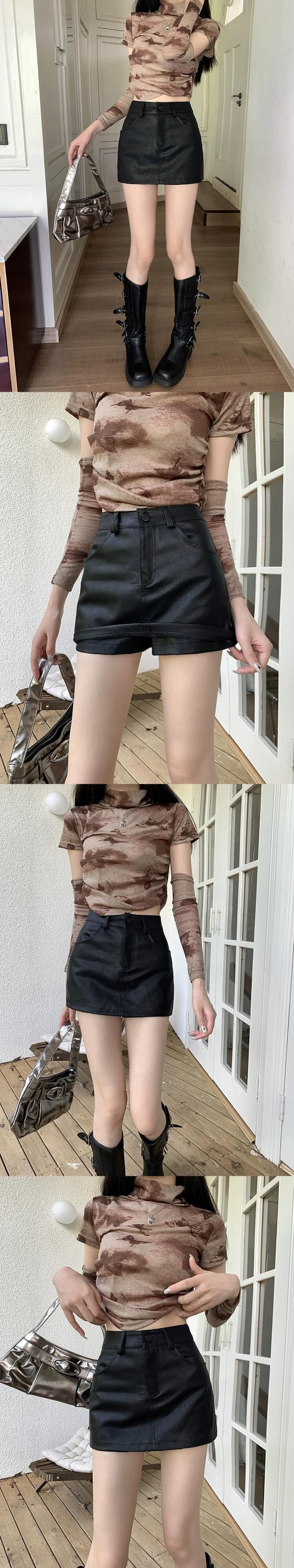 純粋な欲望スタイル pu レザースカートスカート女性秋ハイウエストテクスチャブラウンセクシーな年齢削減 a ラインヒップスカート ハイウェスト オータム 秋物 Aライン Xiaofeijia74701794864
